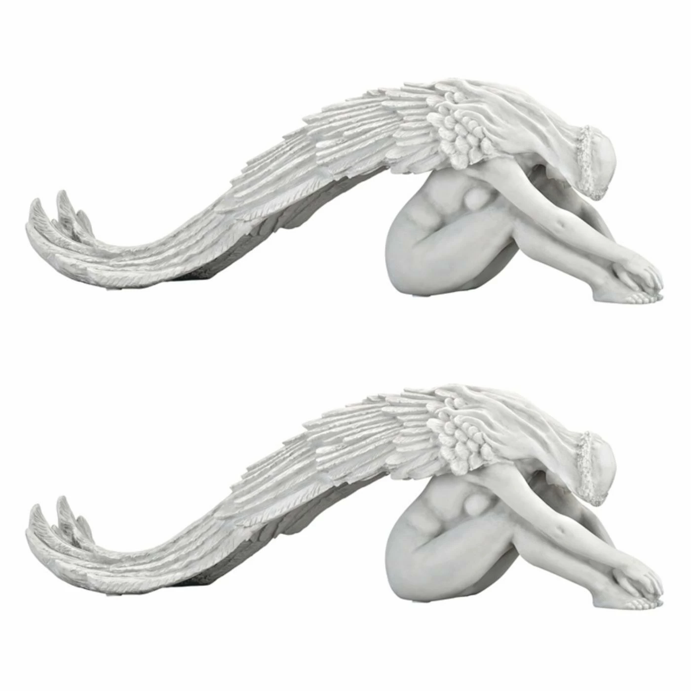 Style the Design Toscano Extended Grace Angel Statue – Set of 2 atop your library wall of bookcases or in your garden to welcome guests. For incredible detail and weather-resistance, these two angel statues are cast in designer resin and hand-painted in a durable stone finish. These angle statues were designed by artist Evelyn Meyers Hartley and span two feet wide.