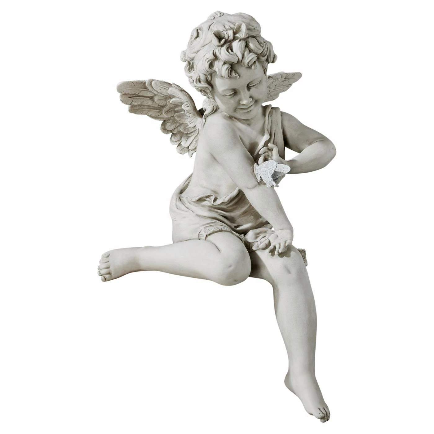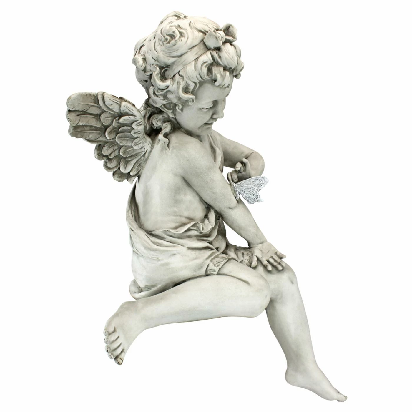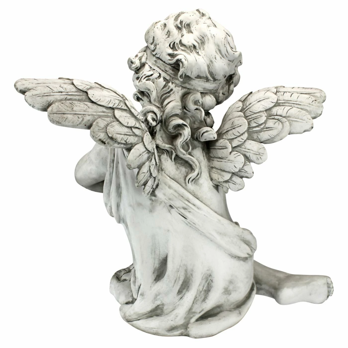 Angelic grace radiates from the Design Toscano Peaceful Presence Angel Sitter Garden Statue. This smiling cherub is captured in weather-resistant resin with an antiqued stone finish and exquisite etching detail. Set it on a ledge, step, wall, or bench to complete the setup of your garden, patio, or deck.