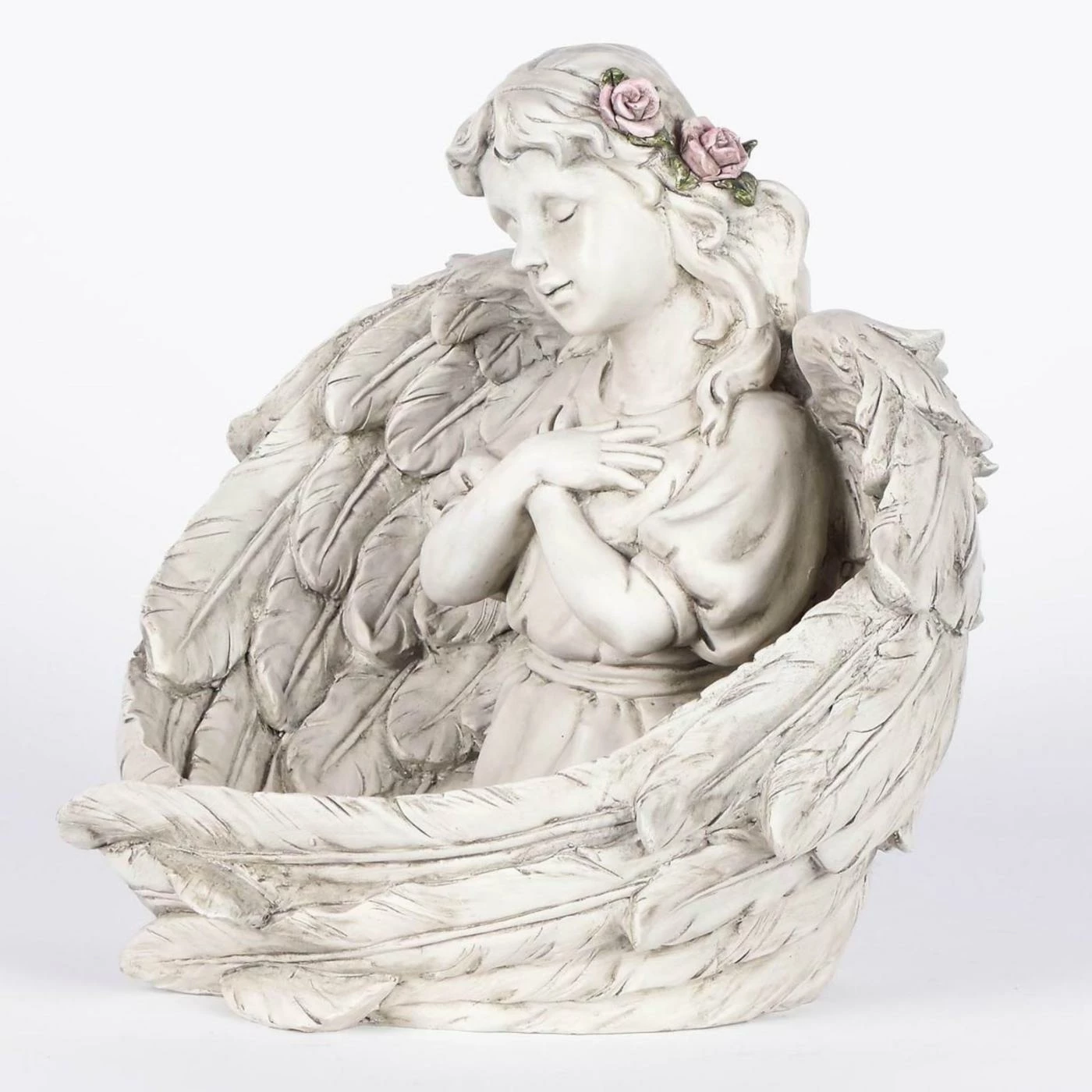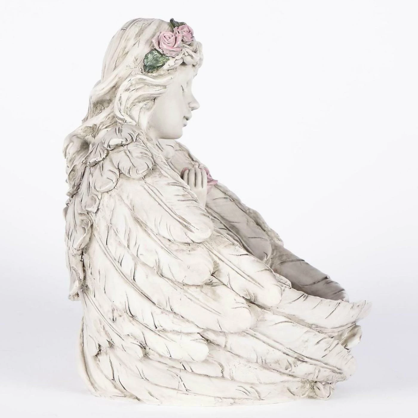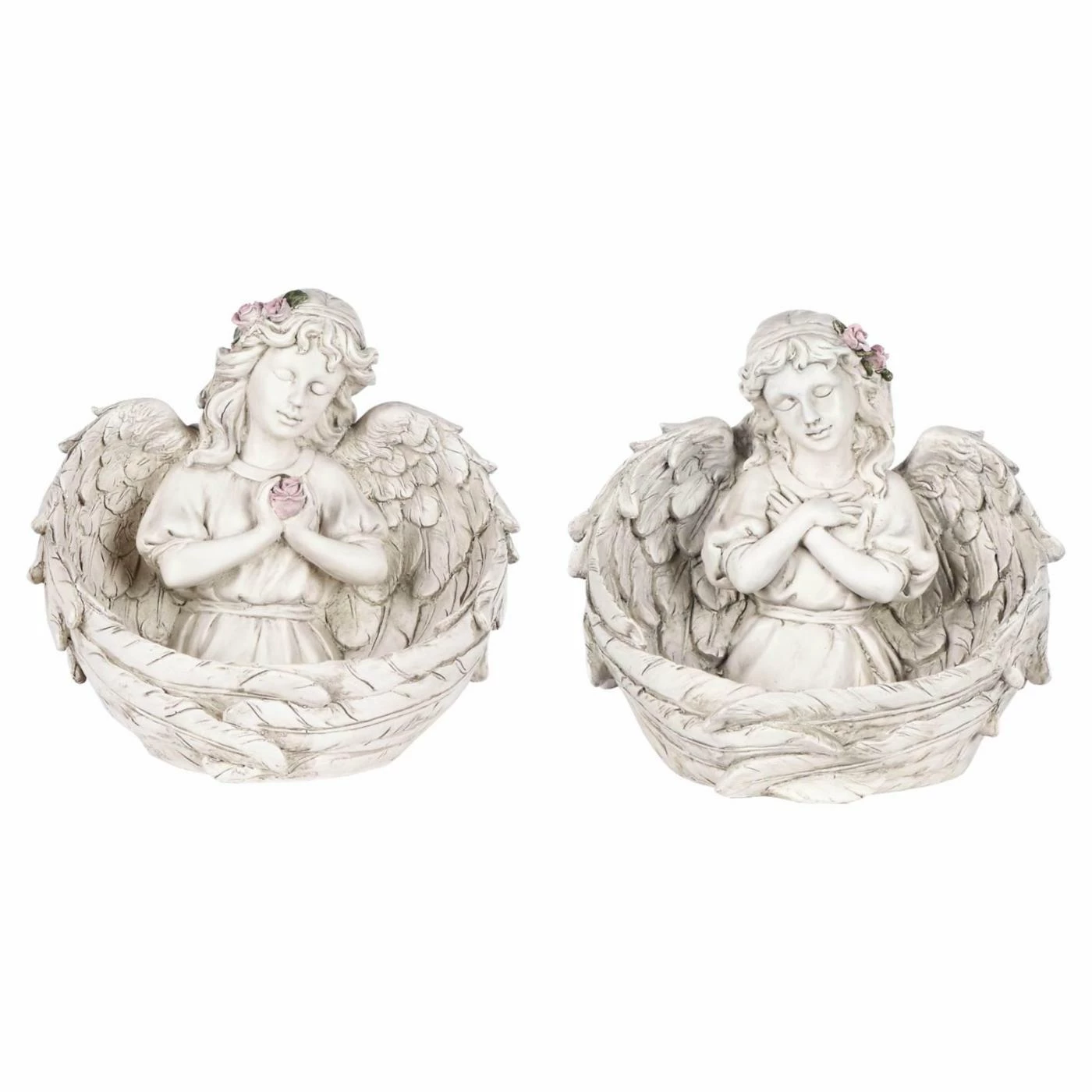 Make your garden a place of serenity and hope when you place the Hi-Line Gift Ltd. Angels Praying Figurine – Set of 2 in your backyard. These polyresin angel figurines can also be displayed indoors. Their gray and white finish has slight variations that make the polyresin resemble stone.