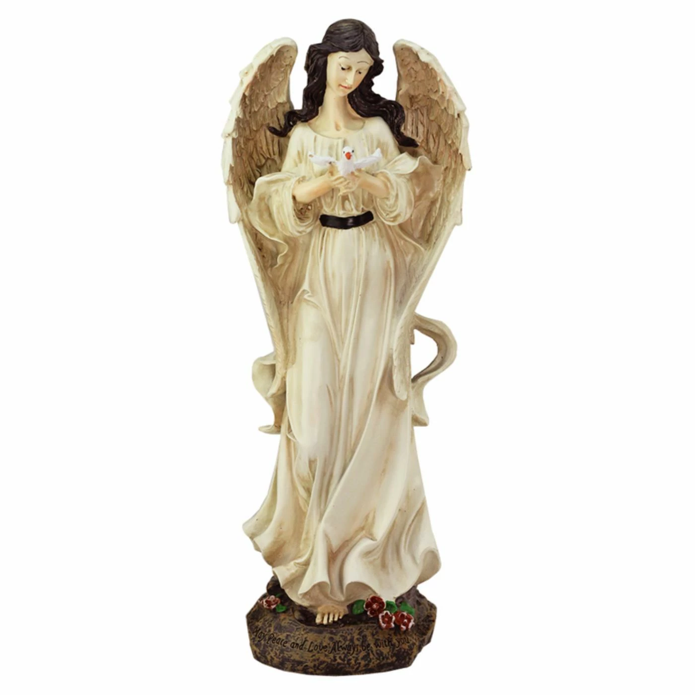 Bring a piece of the heavens to your home or garden with the Northlight Heavenly Gardens Angel with Dove Outdoor Garden Statue, enlivened in a detailed angel silhouette. This durable polyresin statue is presented with full-color details, and she holds a small dove in her hands for a peaceful touch.