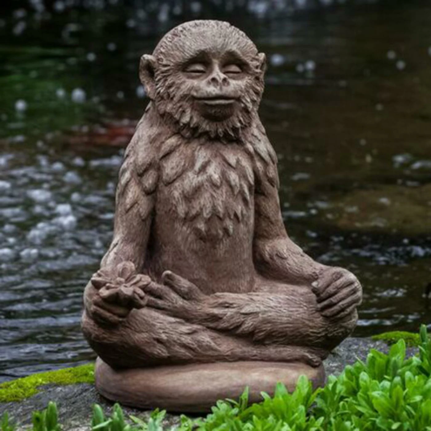 The Campania International Doobie Garden Statue brings humor and Zen together with a monkey sitting in a mindful cross-legged pose. This adorable garden statue is crafted of cast stone and includes your preferred available finish. The monkey is clutching a flower in one hand to give it a sweet finishing touch.