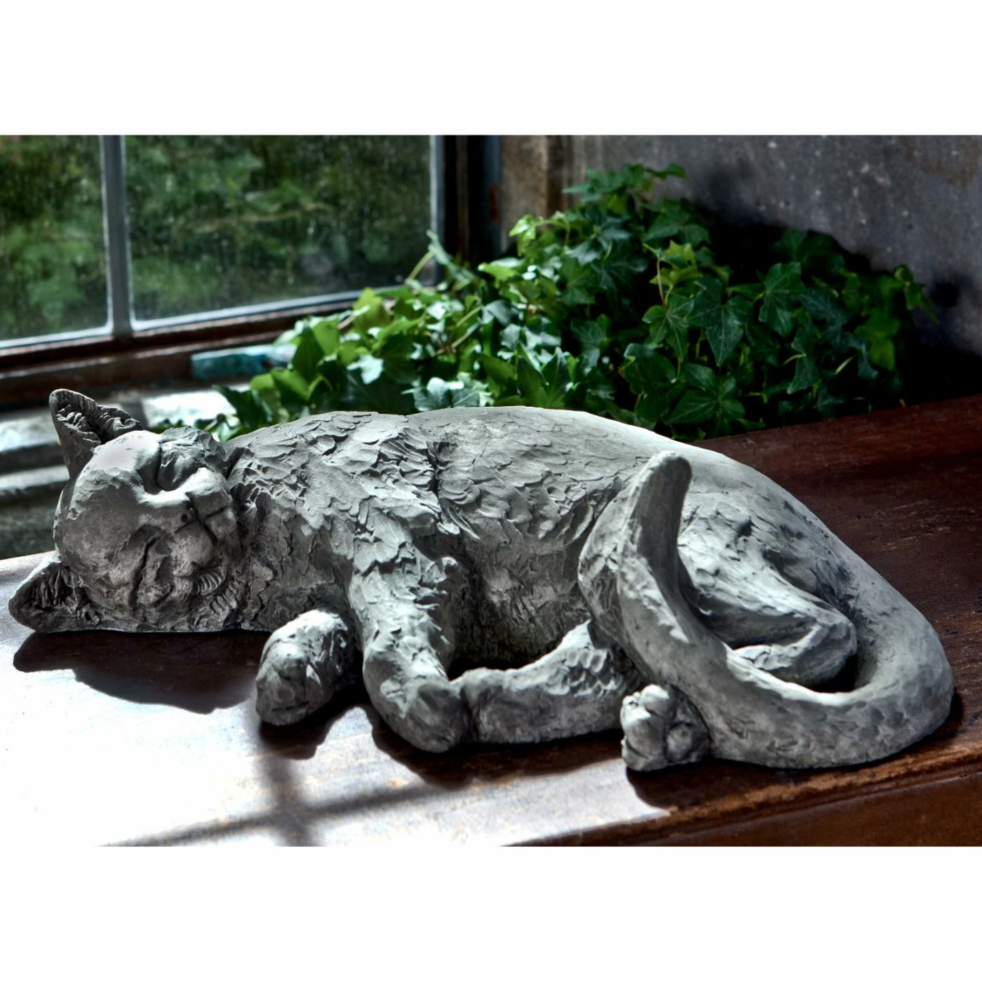 - Sturdy cast stone garden sculpture