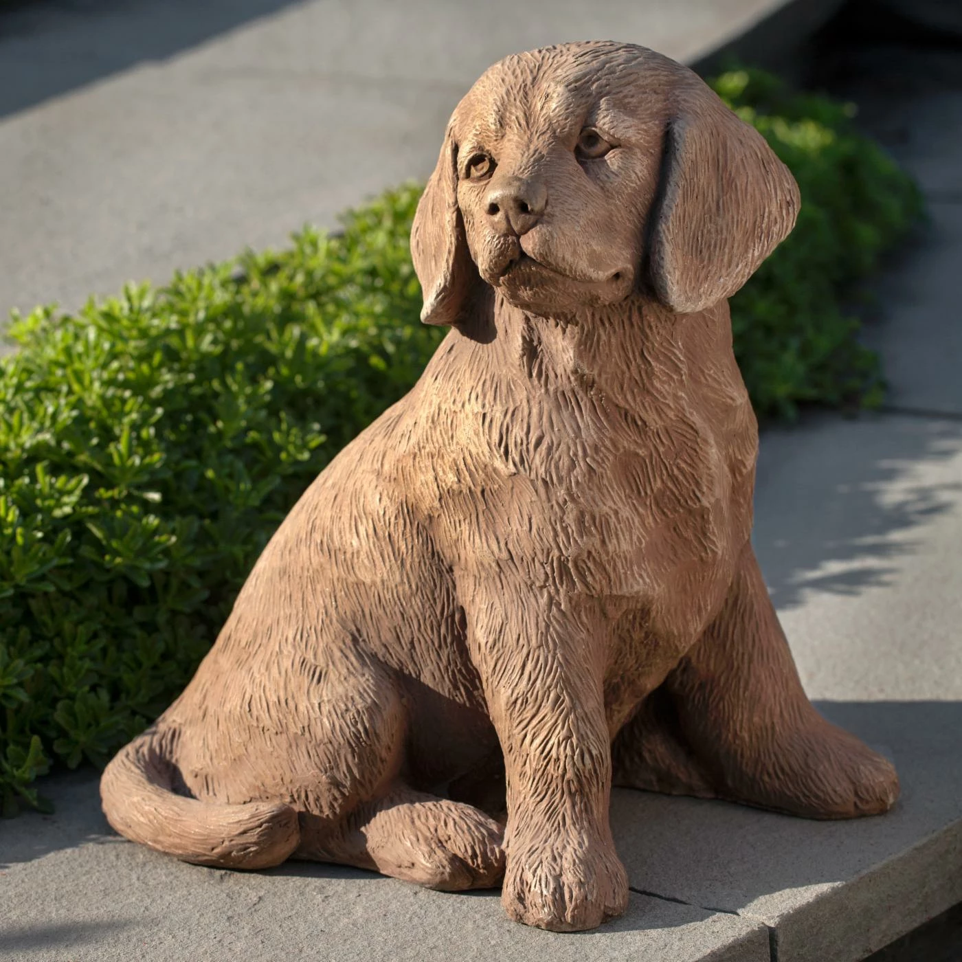 The Campania International Golden Retriever Puppy Cast Stone Garden Statue will melt your heart and enhance your outdoor space. Adorable puppy dog eyes remind you of youth and sweet companionship that only a dog can give.