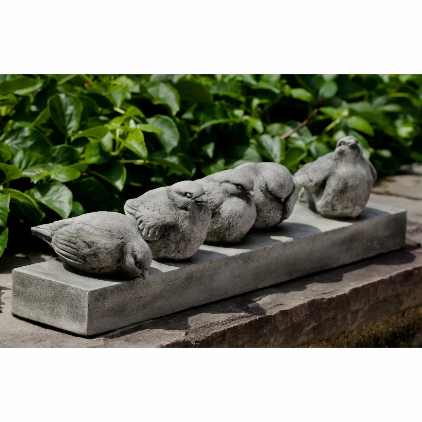 A flock of adorable feathered friends visits your garden with the Campania International Happy Hour Garden Statue. This garden statue features five plump little birds perched along its base and makes a charming addition to your patio, porch, or garden area. It is crafted from sturdy cast stone for a naturally weathered look and is offered in a choice of available finishes.