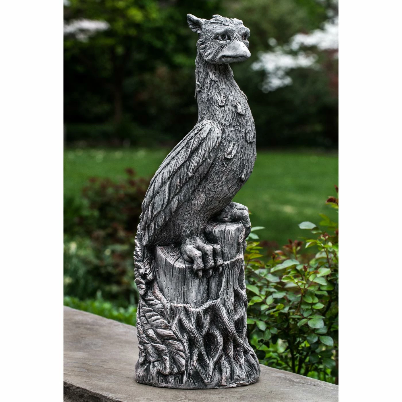 The Campania International Phoenix Cast Stone Garden Statue stands proudly within your garden dΓ©cor. The cast stone construction of this statue is frost-resistant and includes a selection of available finish options. This mythical phoenix comes perched on a tree stump displaying a regal stance ideal for your contemporary home.