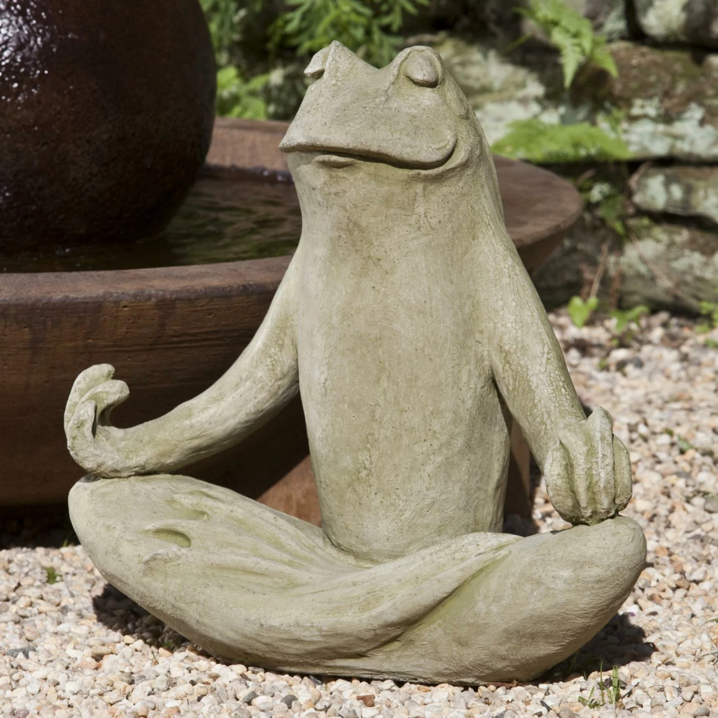 Fill any environment with peace and reflection with the Campania International Totally Zen Frog Cast Stone Garden Statue. This cheerful cast stone frog sits cross-legged as it meditates, bringing a relaxed feel wherever he is placed. Position him in your garden, on your patio, or even in a meditation room to evoke a sense of calm in any space. The stone surface is finished in your choice of available patinas, giving this piece an artisanal look that will weather naturally with age.