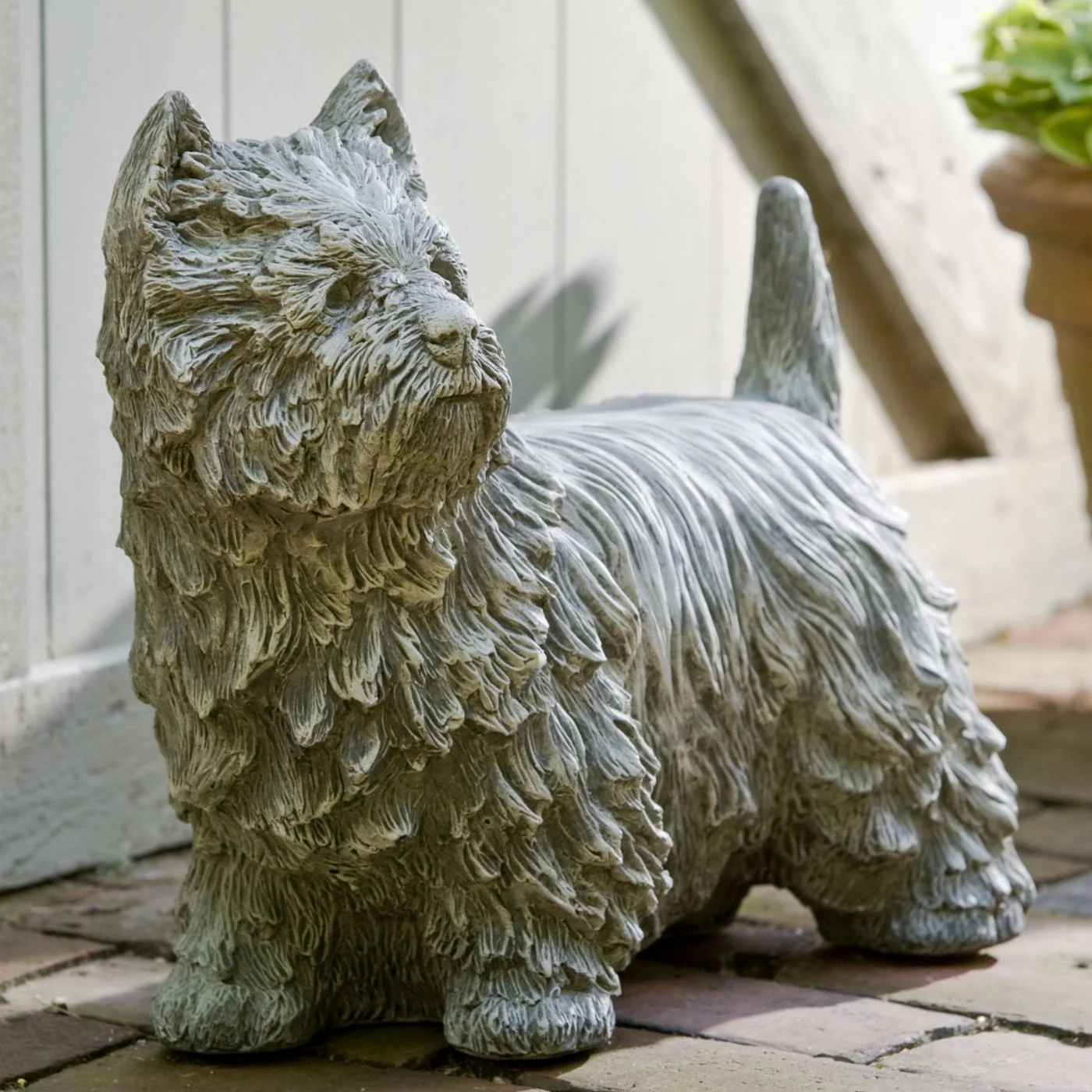 Westie lovers can add charm to their outdoor space with the Campania International Westie The Pup Cast Stone Garden Statue. This cast stone westie garden statue comes in several hand-applied patina finishes. Its durable construction weathers naturally for a lifetime of reliable use.