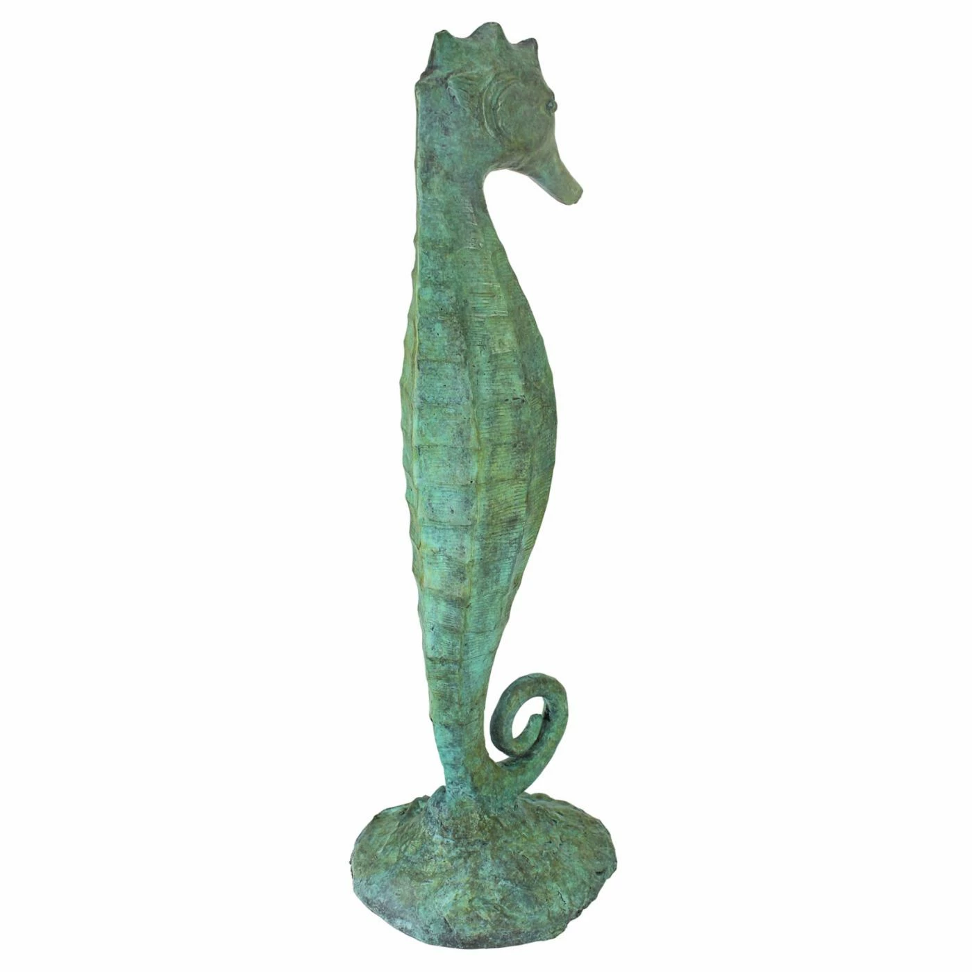 Style the enchanting Design Toscano Seahorse Bronze Garden Statue poolside or near your garden pond. This stylized seahorse is scaled grand at 19 inches tall and is sure to impress. It’s cast in the traditional lost wax bronze method and piped for optional pond or fountain use. To enhance each artistic detail, it features a hand-applied emerald Verde patina. For use as a water feature, simply add the optional 120 GPH pond pump kit (not included).