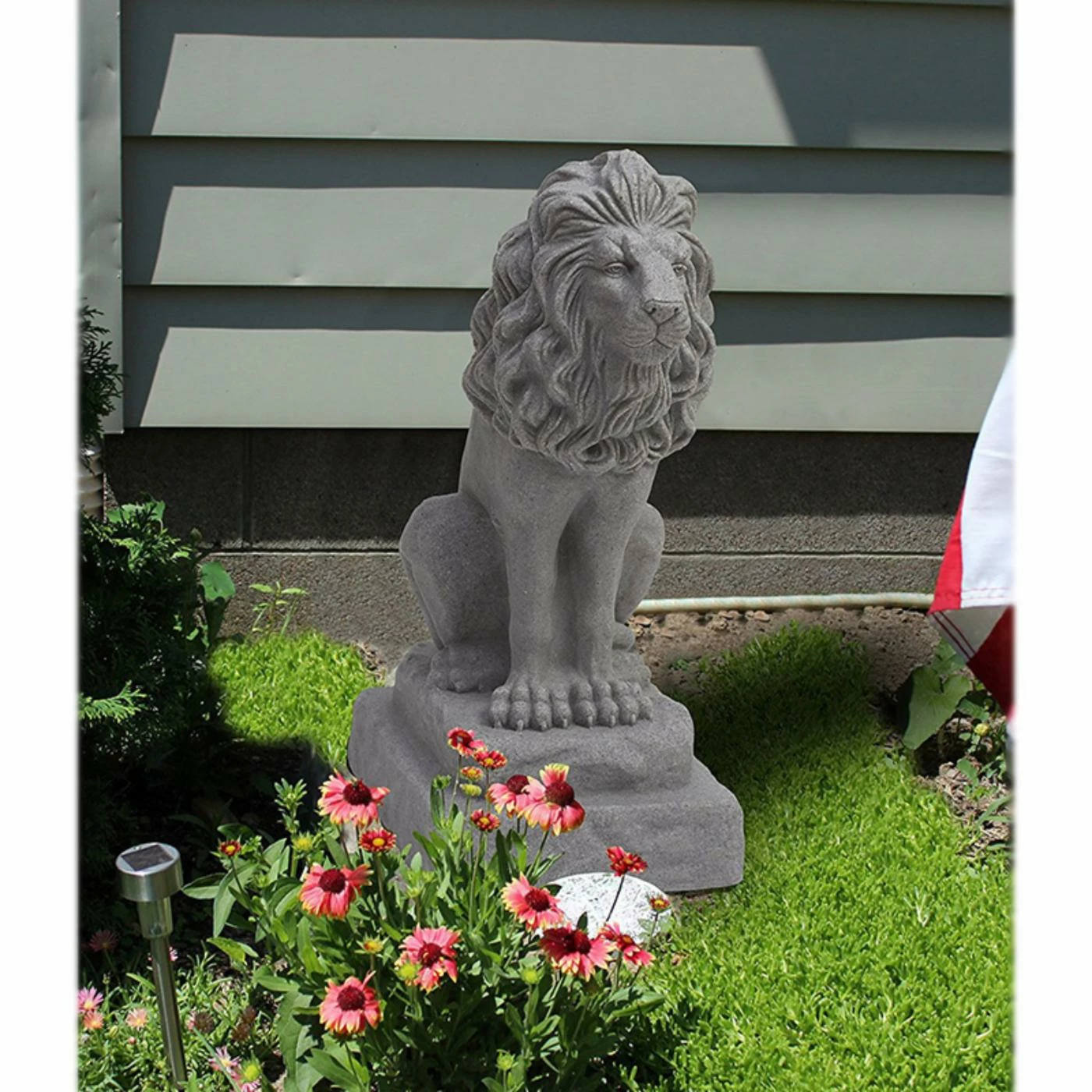 The Emsco Guardian Lion Garden Statue gives your porch, patio, or garden a regal look by featuring remarkable detail. The sturdy resin construction easily stands up to the rigors of outdoor conditions. The selection of available finishes promises a perfect blend with your outdoor space.
