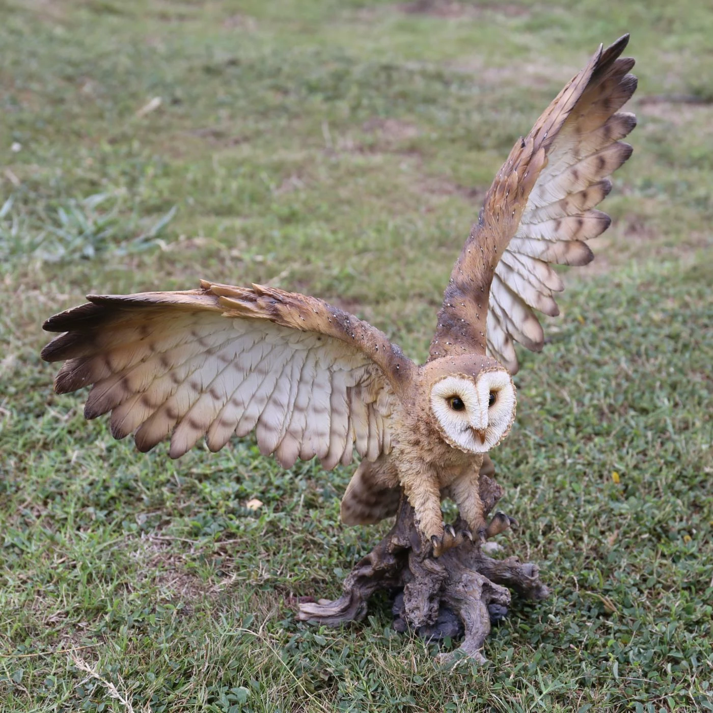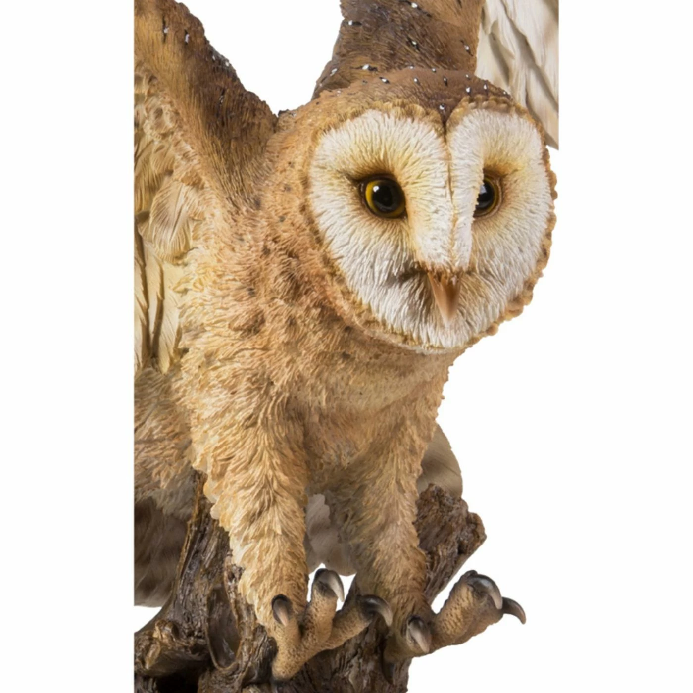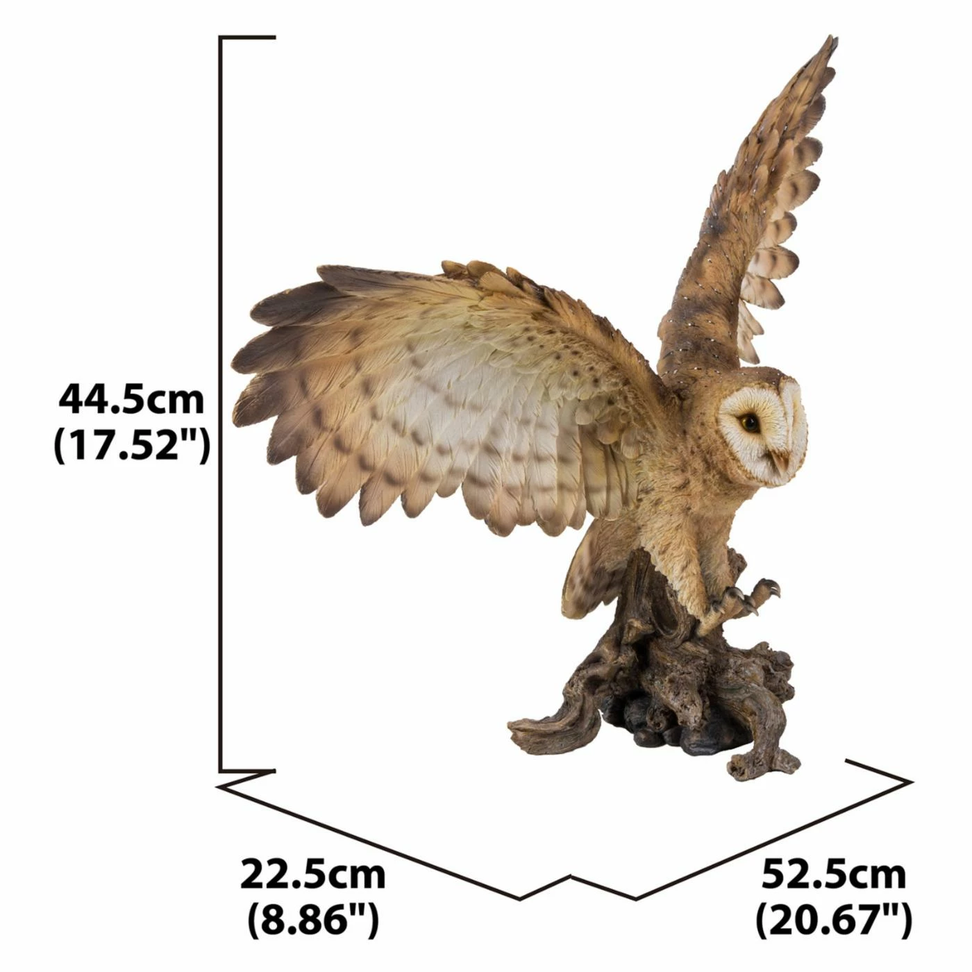 A barn owl appears ready to take flight in the design of the Hi-Line Gift Ltd. Barn Owl On Stump With Open Wings. The polyresin sculpture is ideal for decorating rustic- and lodge-themed living spaces.