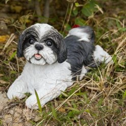 With its cheerful expression, the Hi-Line Gift Ltd. Black and White Shih Tzu Lying Down will set a lively mood in your living space. The whimsical sculpture is cast out of resin and realistically painted in tones of black and white.