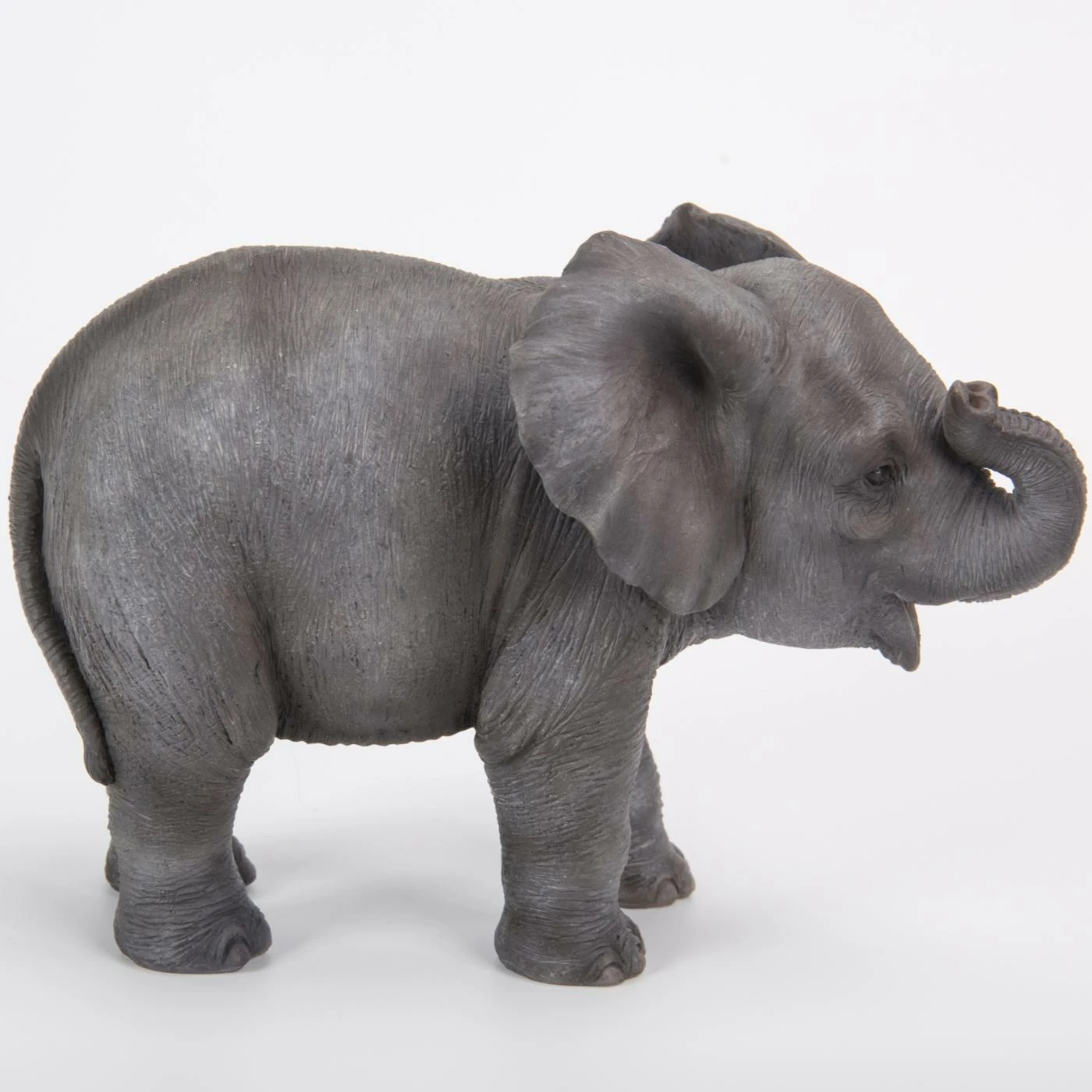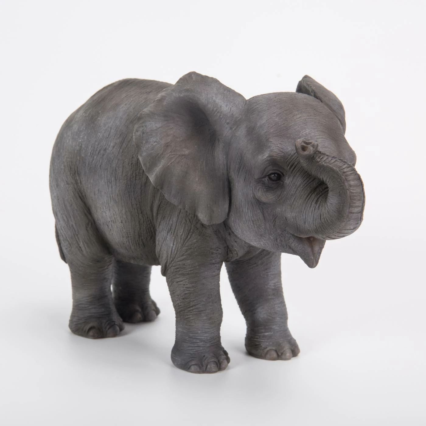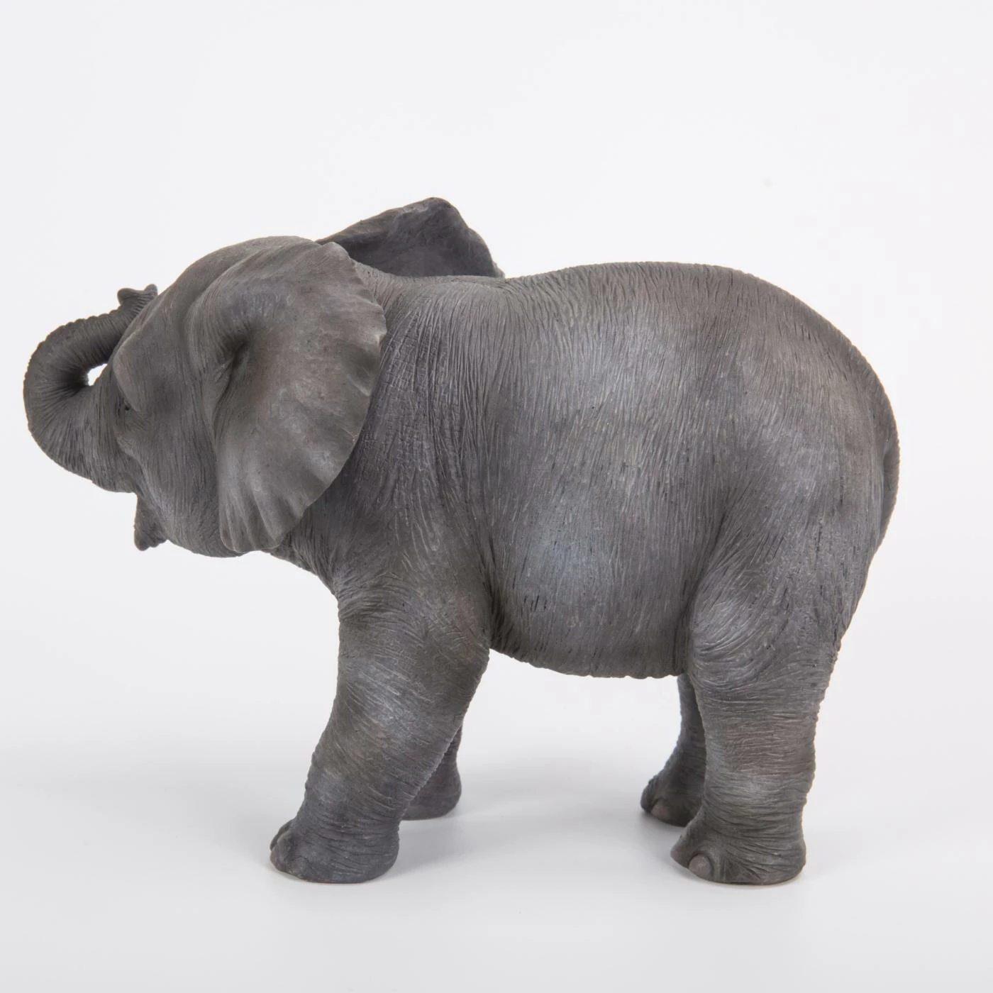 Depicting a playful pachyderm, the Hi-Line Gift Ltd. Elephant Baby Statue is a whimsical decoration for a safari-themed living space. The polyresin statue shows the elephant with its trunk raised, which is considered a sign of good luck.