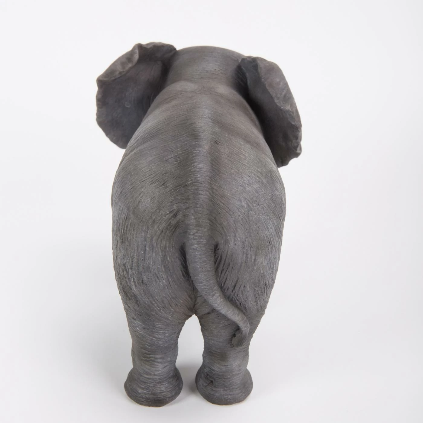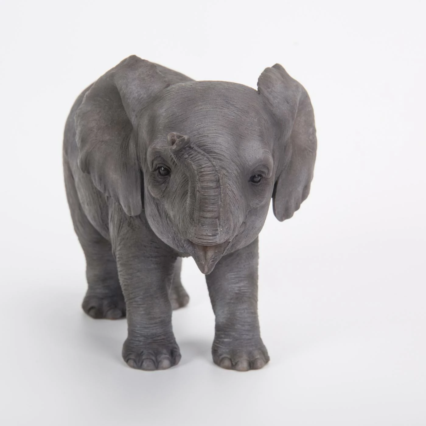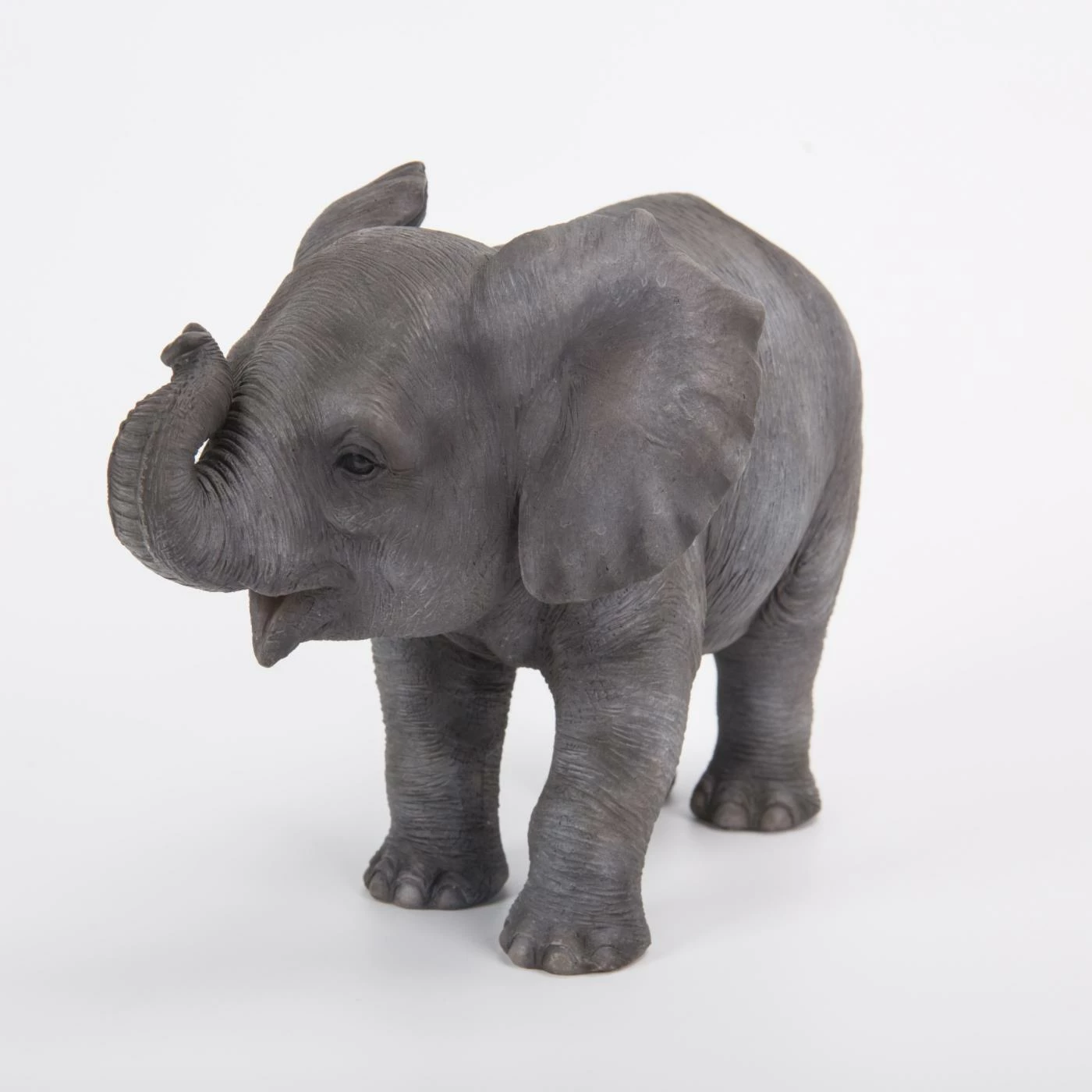 Depicting a playful pachyderm, the Hi-Line Gift Ltd. Elephant Baby Statue is a whimsical decoration for a safari-themed living space. The polyresin statue shows the elephant with its trunk raised, which is considered a sign of good luck.