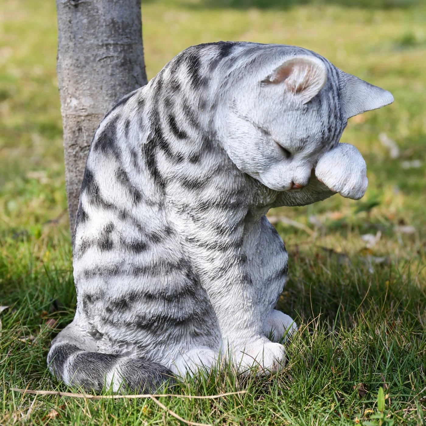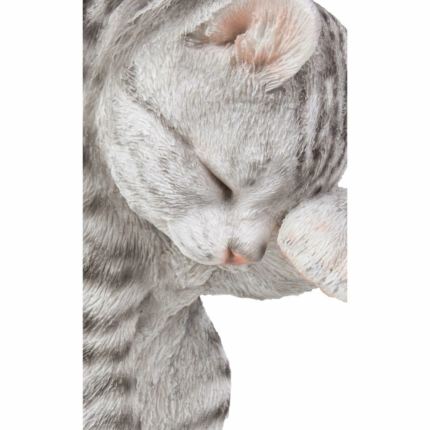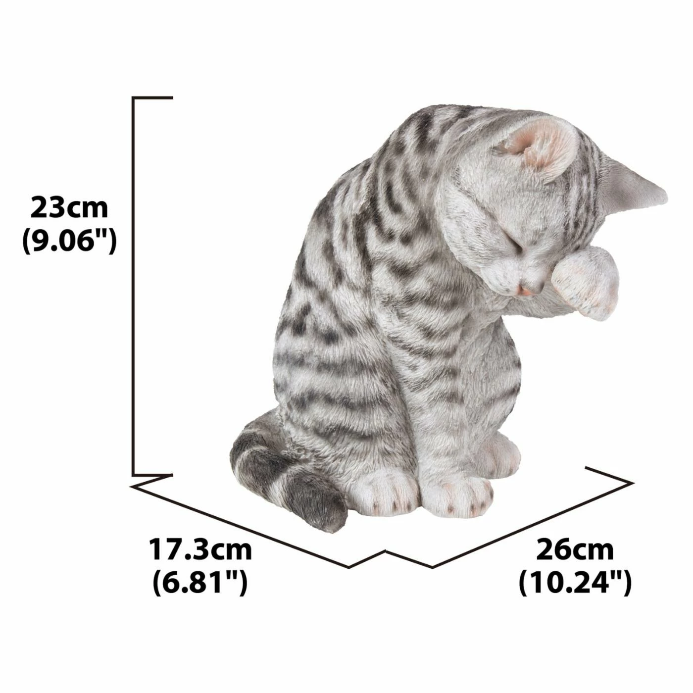 Showing a house-cat in the midst of a bath, the Hi-Line Gift Ltd. Grey Tabby Cat American Shorthair Washing is the purr-fect way to add some charm to your bathroom. The sculpture is made of cast resin that resists wear and tear.