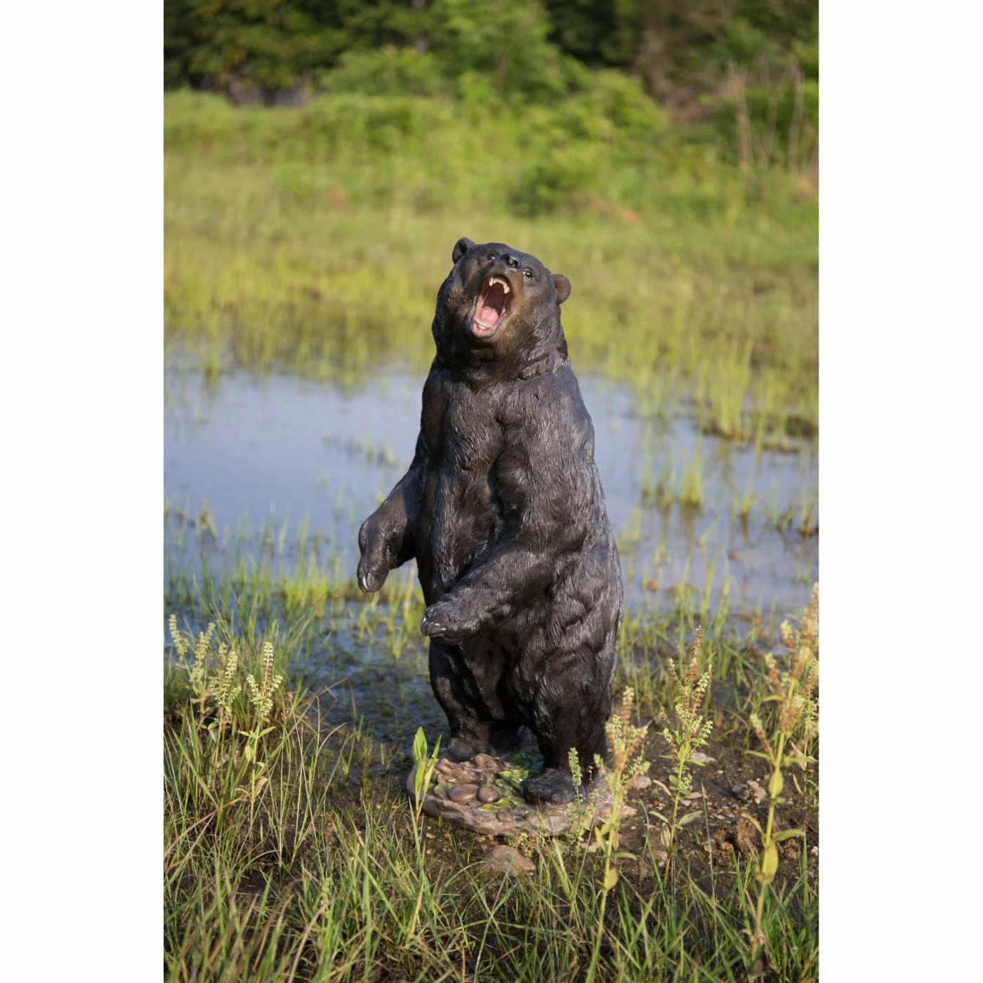 Enjoy a slice of wildlife without the bite when you add the Hi-Line Gift Ltd. Growling Standing Bear Indoor/Outdoor Statue to your garden or indoor space. Made of sturdy resin, this realistic statue features a standing bear as he fiercely growls.