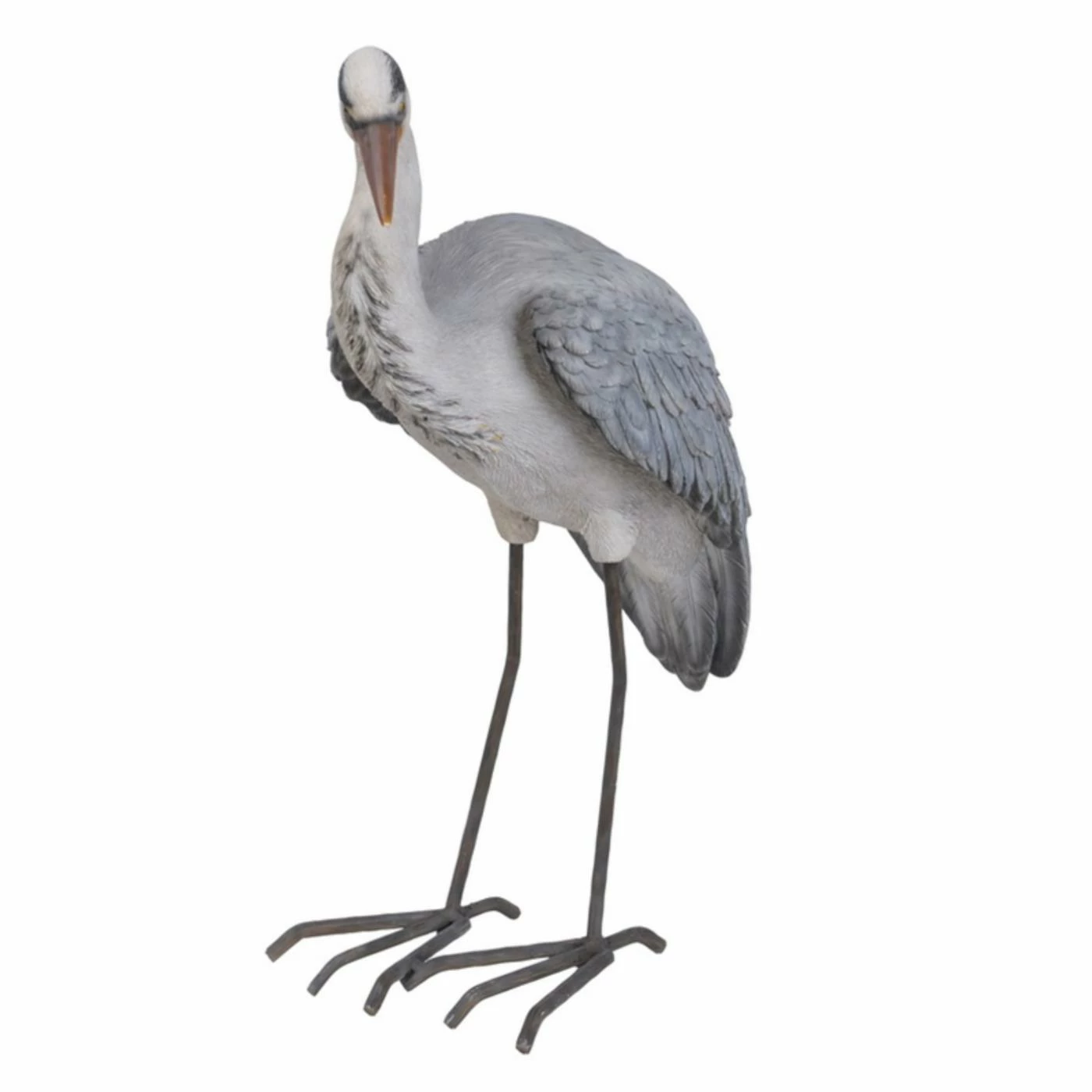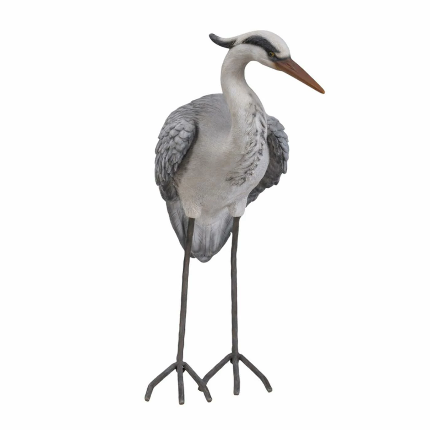 The Hi-Line Gift Ltd. Heron Statue is made from polyresin to create a sturdy indoor and outdoor statue. Finished in a sleek gray color with brown and gray accents, it features a stately heron standing a full 21 inches tall.