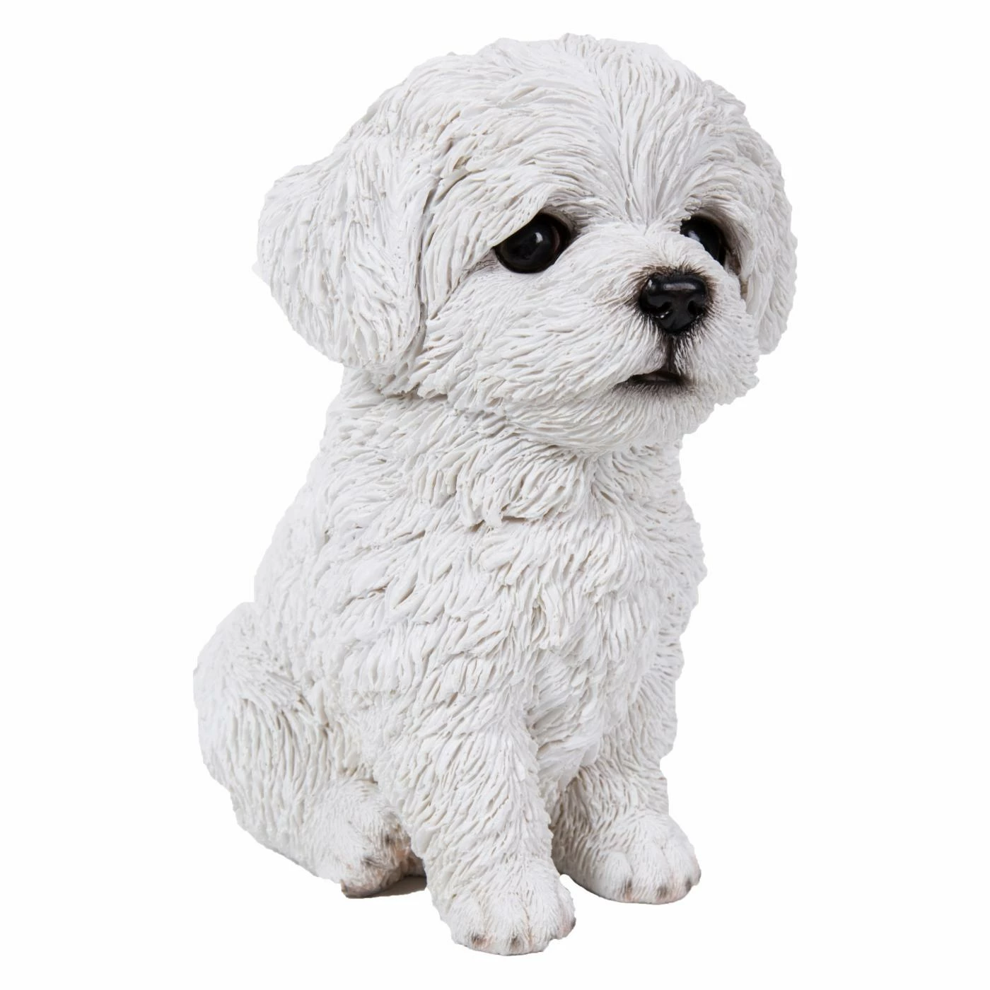 Make guests grin with the Hi-Line Gift Ltd. Maltese Puppy Statue. The playful expression and fluffy-fur texture of this polyresin sculpture gives the piece a lifelike quality.