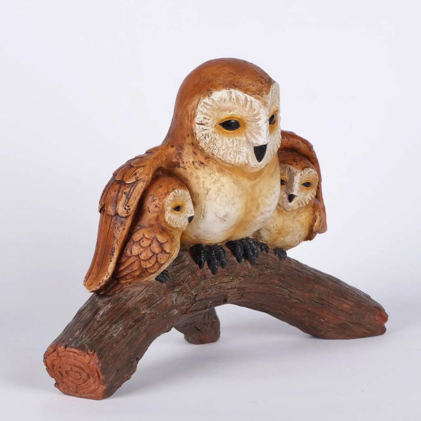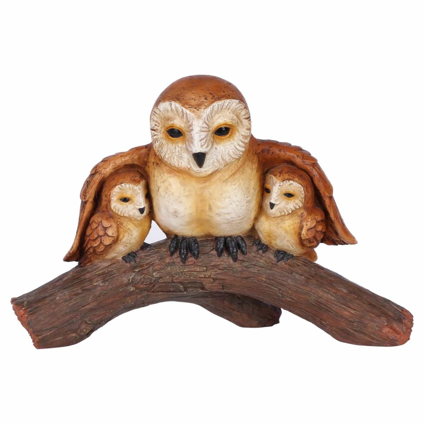 On the Hi-Line Gift Ltd. Owl Family Figurine, a protective parent shelters two baby owls under her wings. This familial statue is made of lightweight, durable polyresin. The piece has an intricately applied finish with multiple variations in color to give it a natural look.