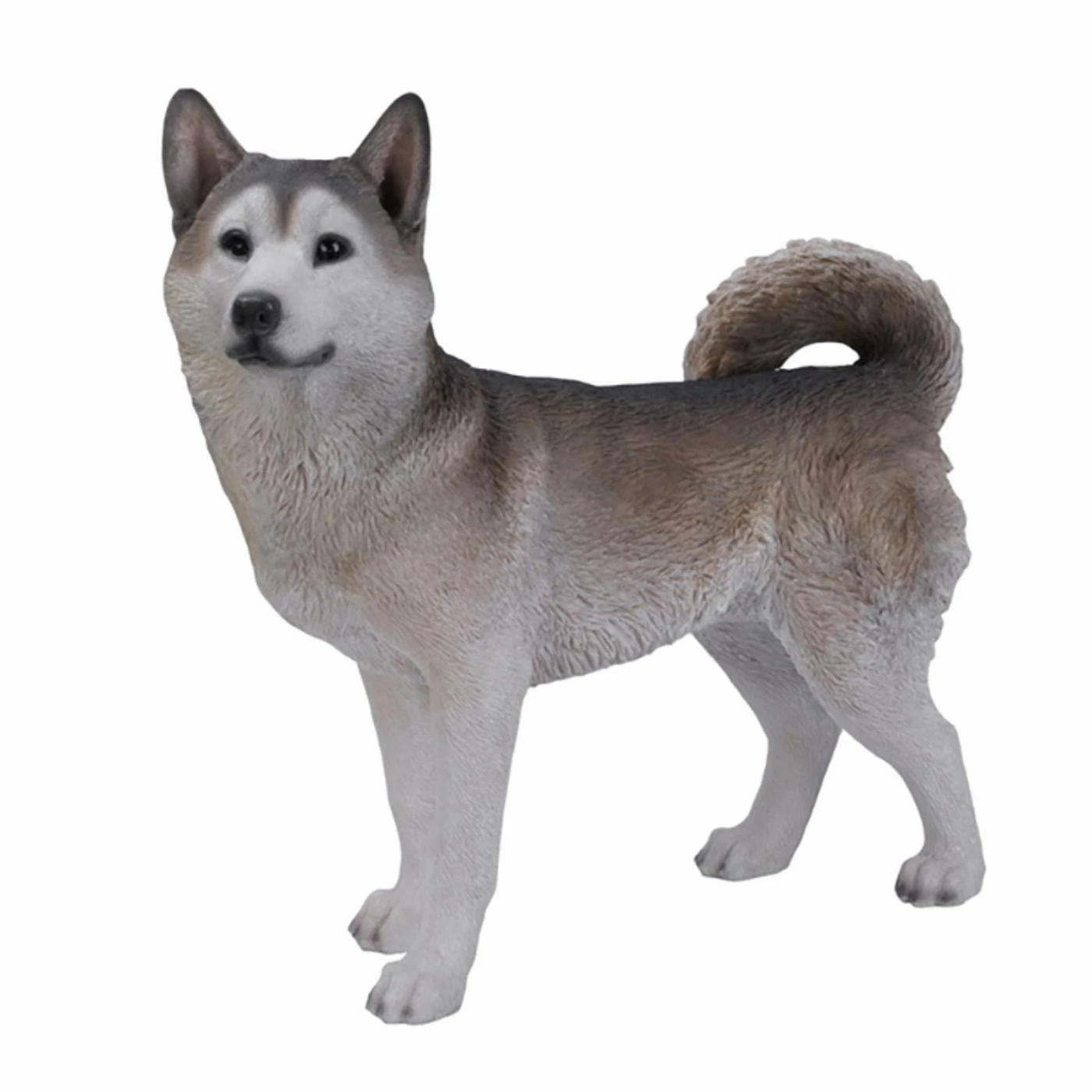 Soft brown and black colors breathe life into the Hi-Line Gift Ltd. Siberian Husky Statue, which depicts a Siberian Husky crafted from sturdy resin. Perfect for indoor and outdoor environments, this realistic statue brings a natural feel to any space.
