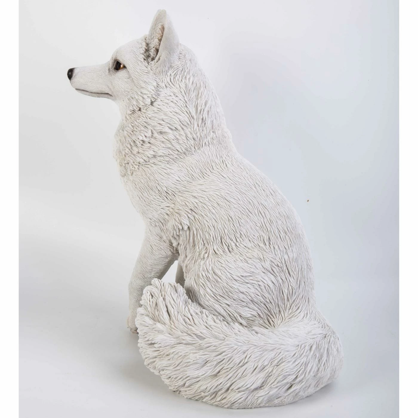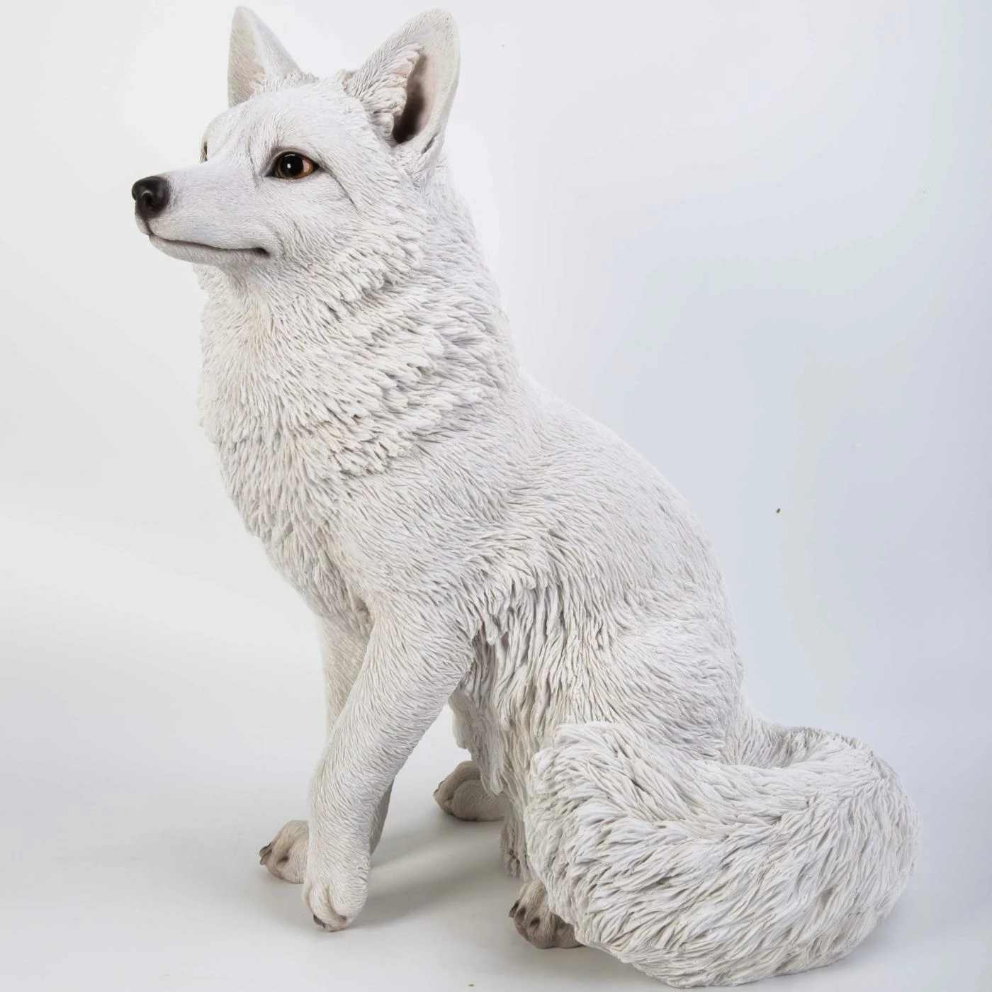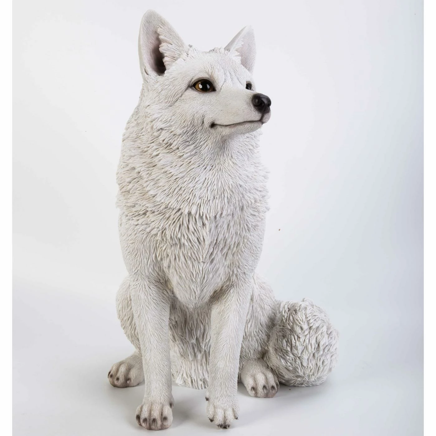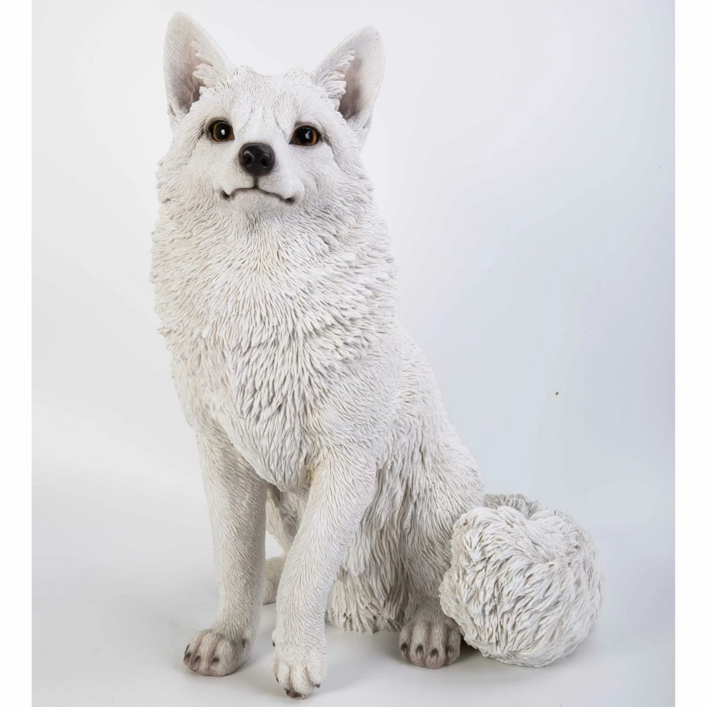 Proudly posed in a seated position, the Hi-Line Gift Ltd. Snow Fox Statue reflects the elegance and power of a real snow fox. The sculpture is cast out of resin and then carefully painted by hand.