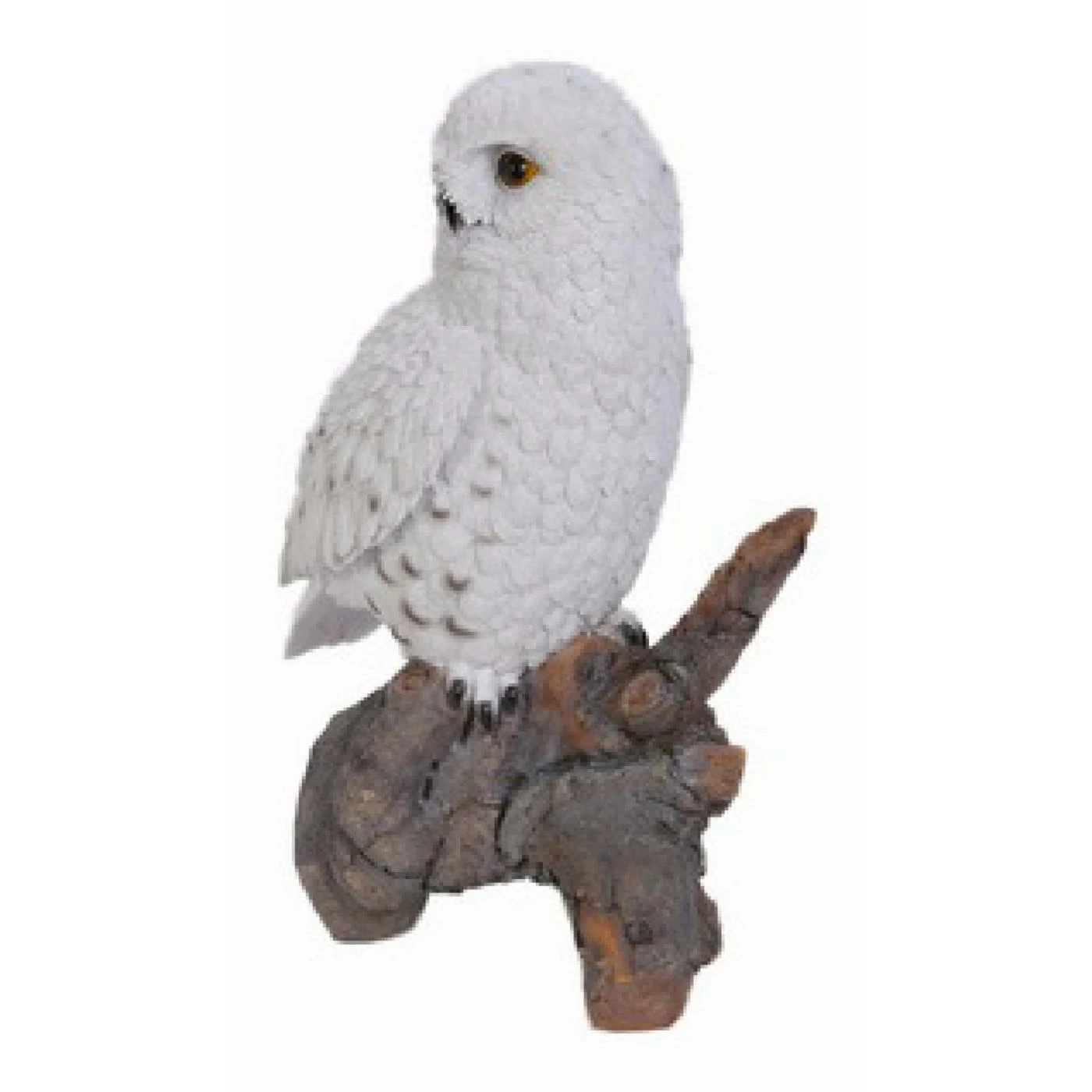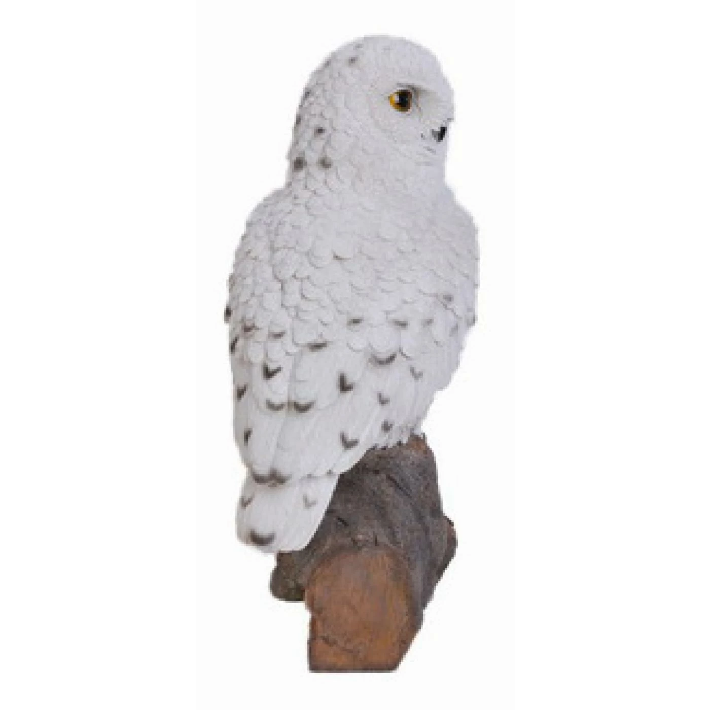 Decorate your garden any time of year with the Hi-Line Gift Ltd. Snowy Owl on Stump Garden Statue – White. This garden statue depicts a brown and white snowy owl is perched on a branch and looking over his shoulder in vivid painted detail. The polyresin construction is both lightweight and weather-resistant, an ideal choice for indoor or outdoor use.
