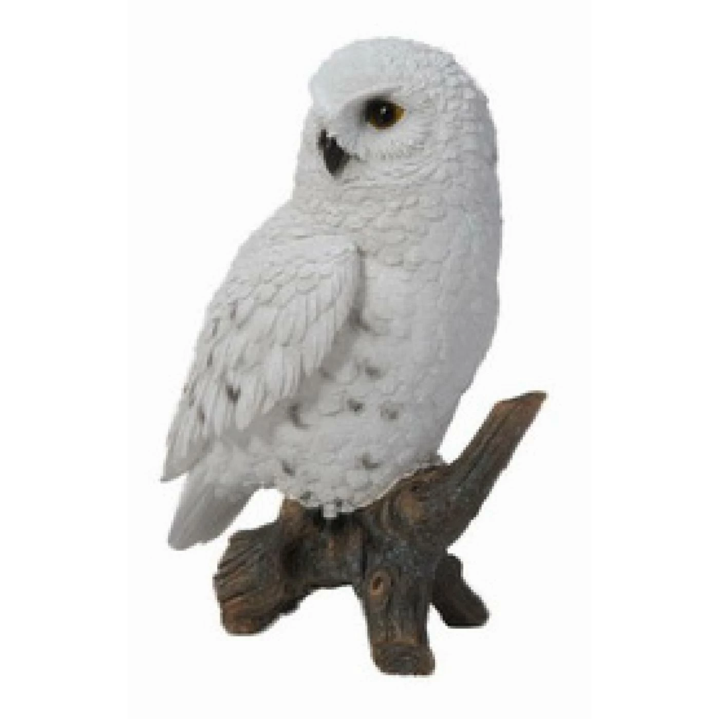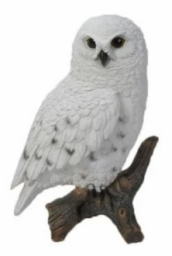 Create a natural or magical theme in your garden with the Hi-Line Gift Ltd. Snowy Owl on Stump Garden Statue. The statue is painted in white with brown accenting. This Snowy Owl garden statue is perched on a stump and looking over his shoulder.