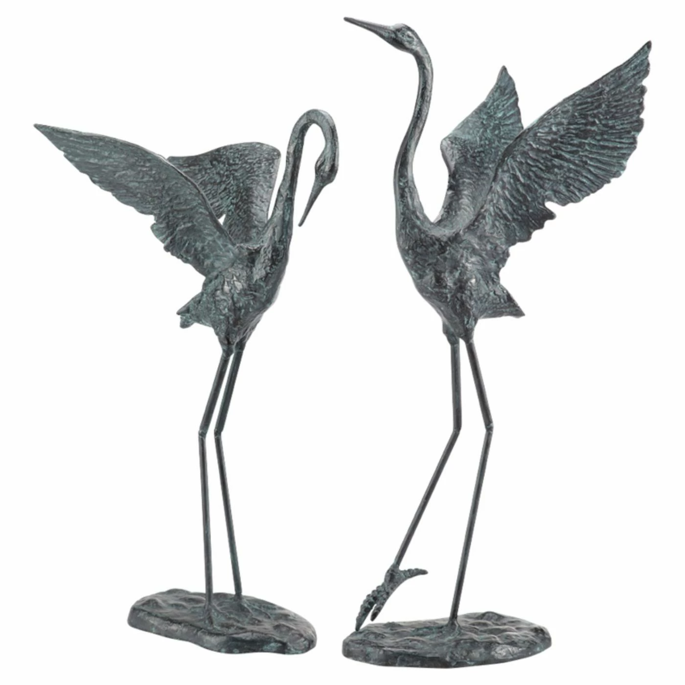 Bring the beauty of the water into your dΓ©cor by accessorizing your garden with the San Pacific International Exalted Crane Garden Statue – Set of 2. This pair of cast iron statues boasts an antique green finish for a casual, aged appearance.
