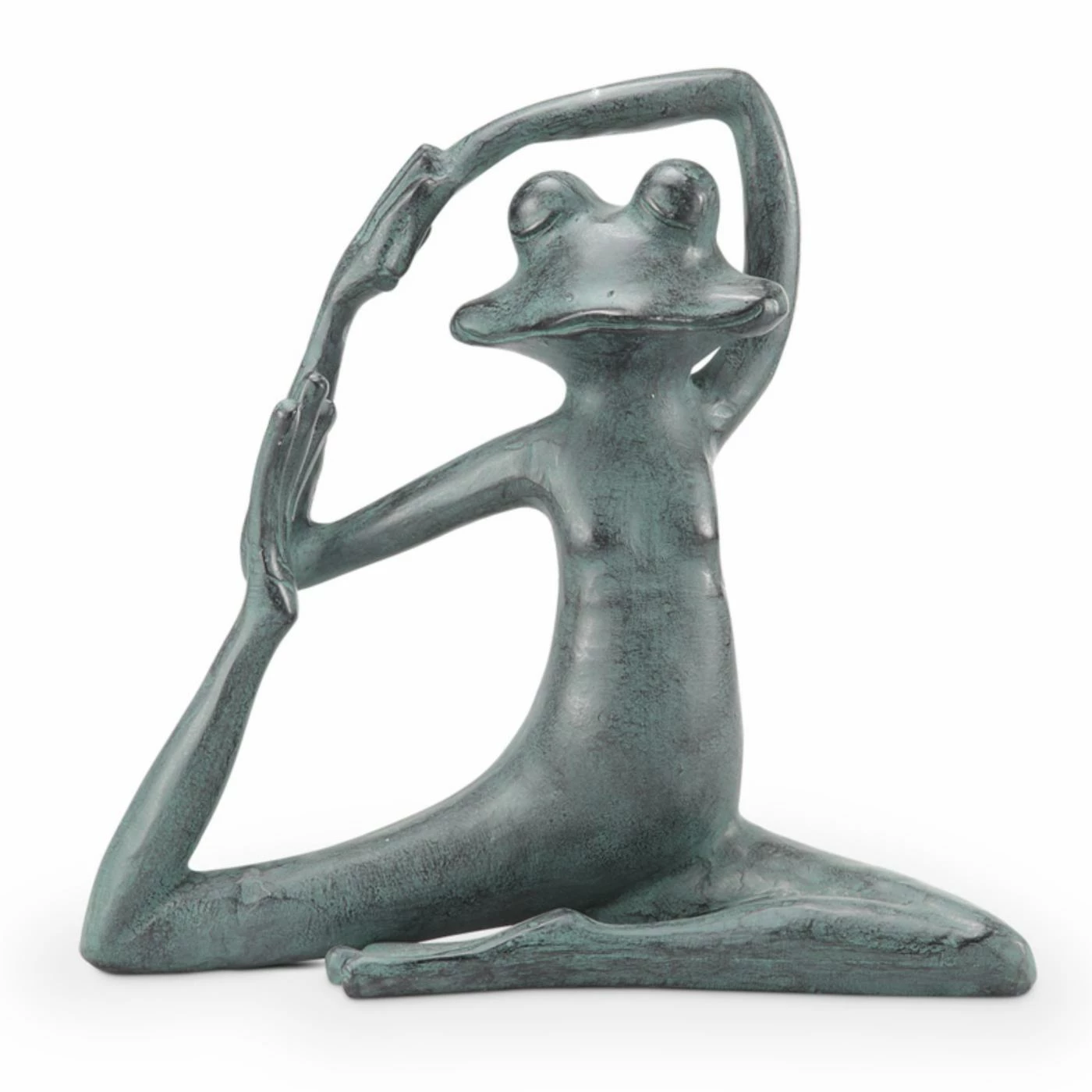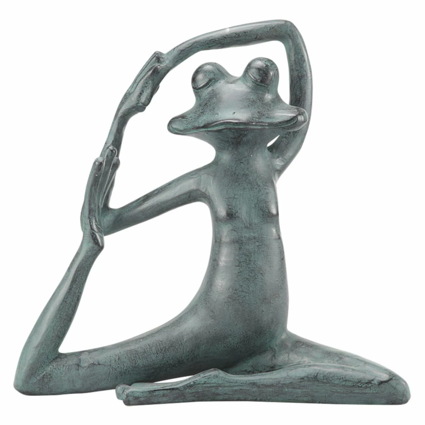 Showcase your love for yoga by decorating your garden with the San Pacific International Relaxed Yoga Frog Garden Sculpture. This statue features a green finish that makes it look as though it has a patina.