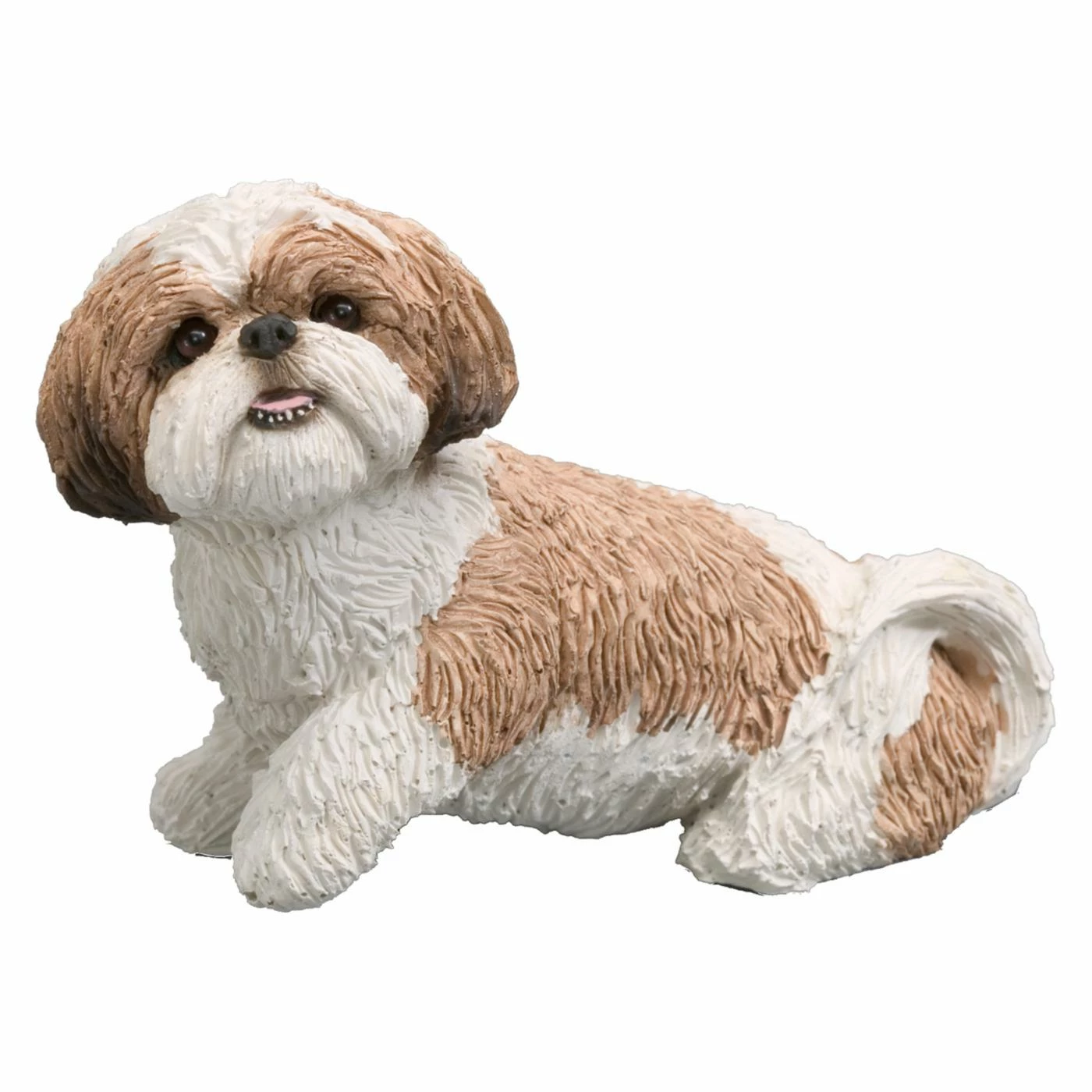 This fluffy friend, the Sandicast Mid Size Gold/White Shih Tzu Sculpture, looks ready to snuggle up in your home! Crafted by hand, even the playful eyes will remind you of its namesakeβs spirit.