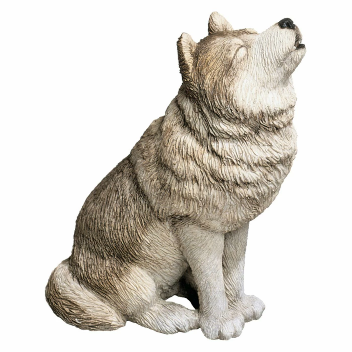 Sandicast hand-cast and hand-painted Mid Size Gray Wolf Sculpture. Made from marble dust and poly resin.