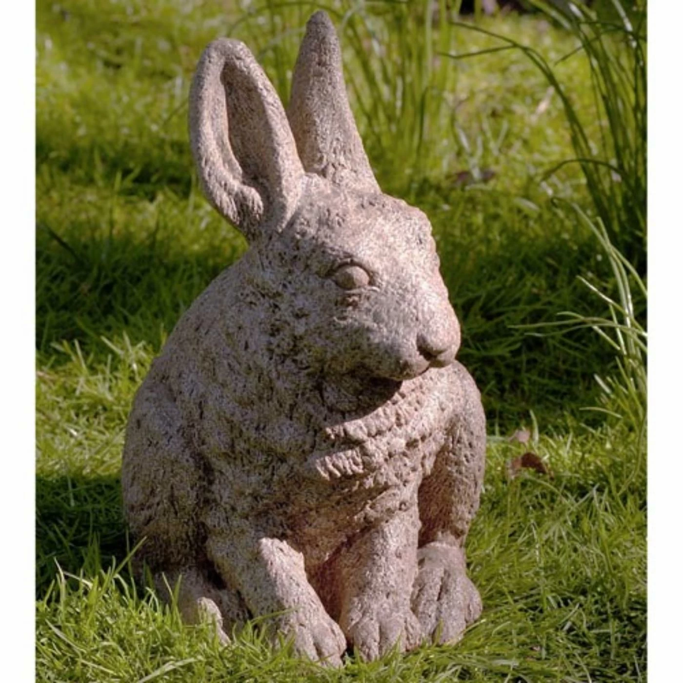 Decorate your flower garden with the artisan-crafted Campania Seated Ear Up Hare Garden Statue. This statue is animated with sculpted details like thick fur, an alert posture, and energetic ears. The weather-softened natural look of the stone is achieved by hand-applying a unique patina finish, which gives the illusion of an ancient piece in an old-fashioned garden.