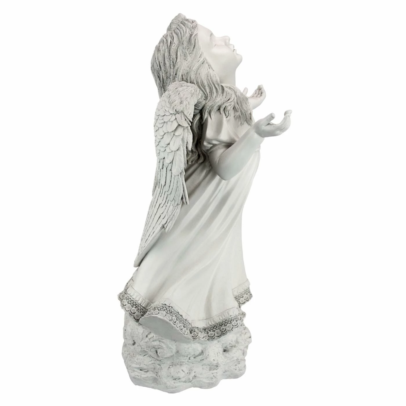 The In God’s Grace Angel Statue offers a charming peace and happiness for any setting. This beautiful cherub offers arms outstretched and is crafted of designer resin in striking detail. She features a realistic stone finish and is perfect for any yard, patio, garden, or walkway.