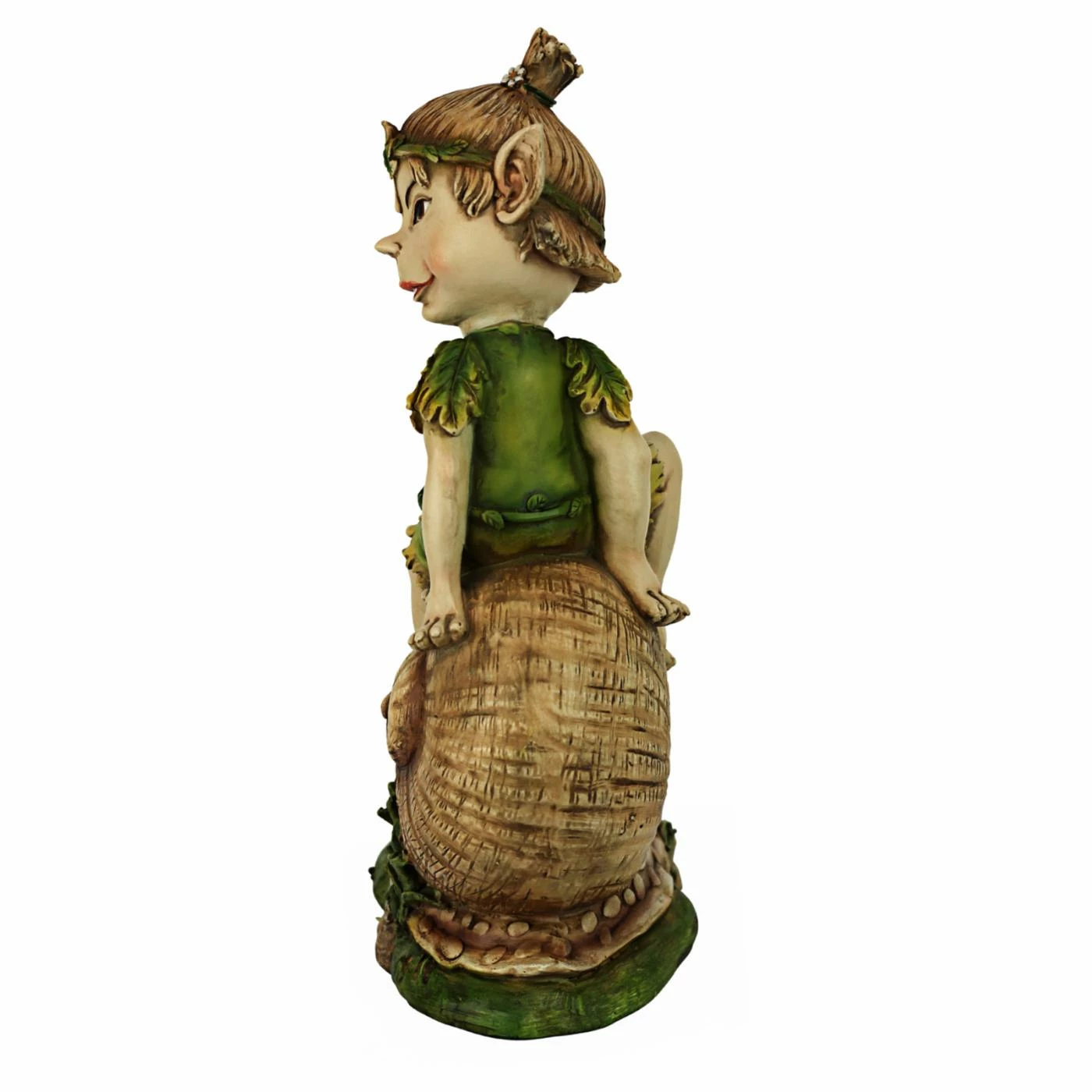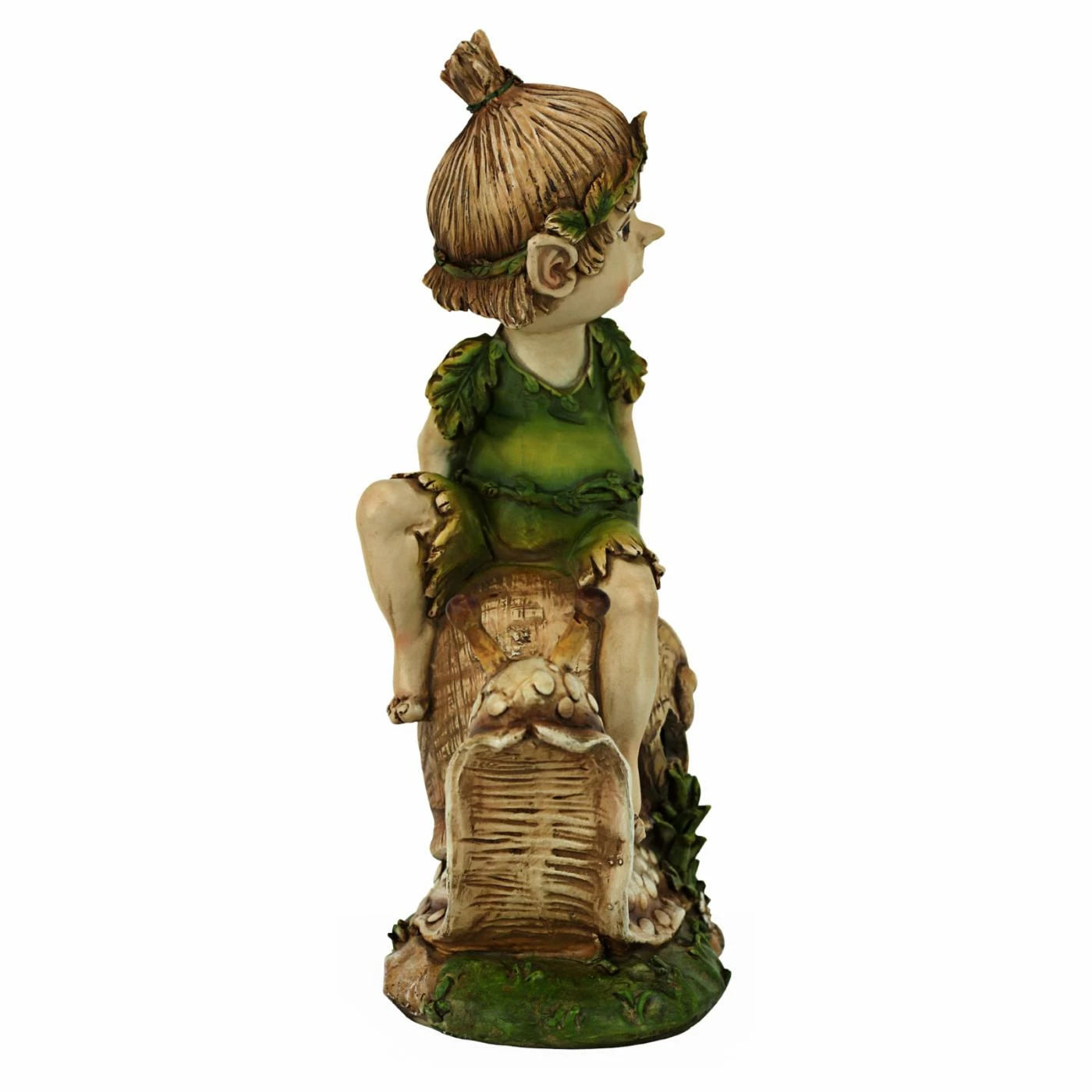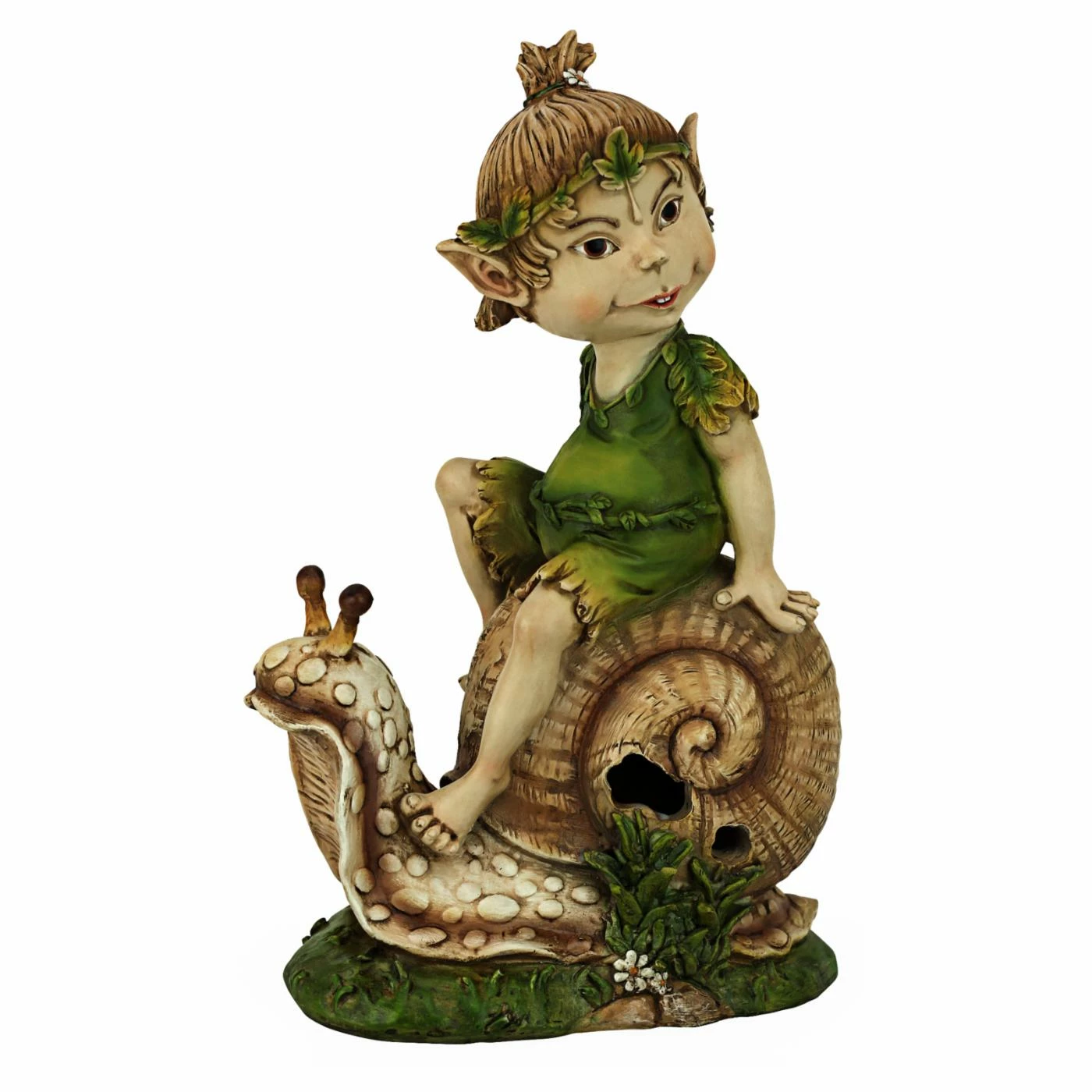 The Design Toscano Pixie Pete Elfin Garden Statue sets an enchanting and comical scene, cast in designer resin. This hand-painted decorative piece depicts an elf hitching a ride on his snail pal. Ornate etching adds eye-catching detail to this garden statue, which can also be displayed indoors.