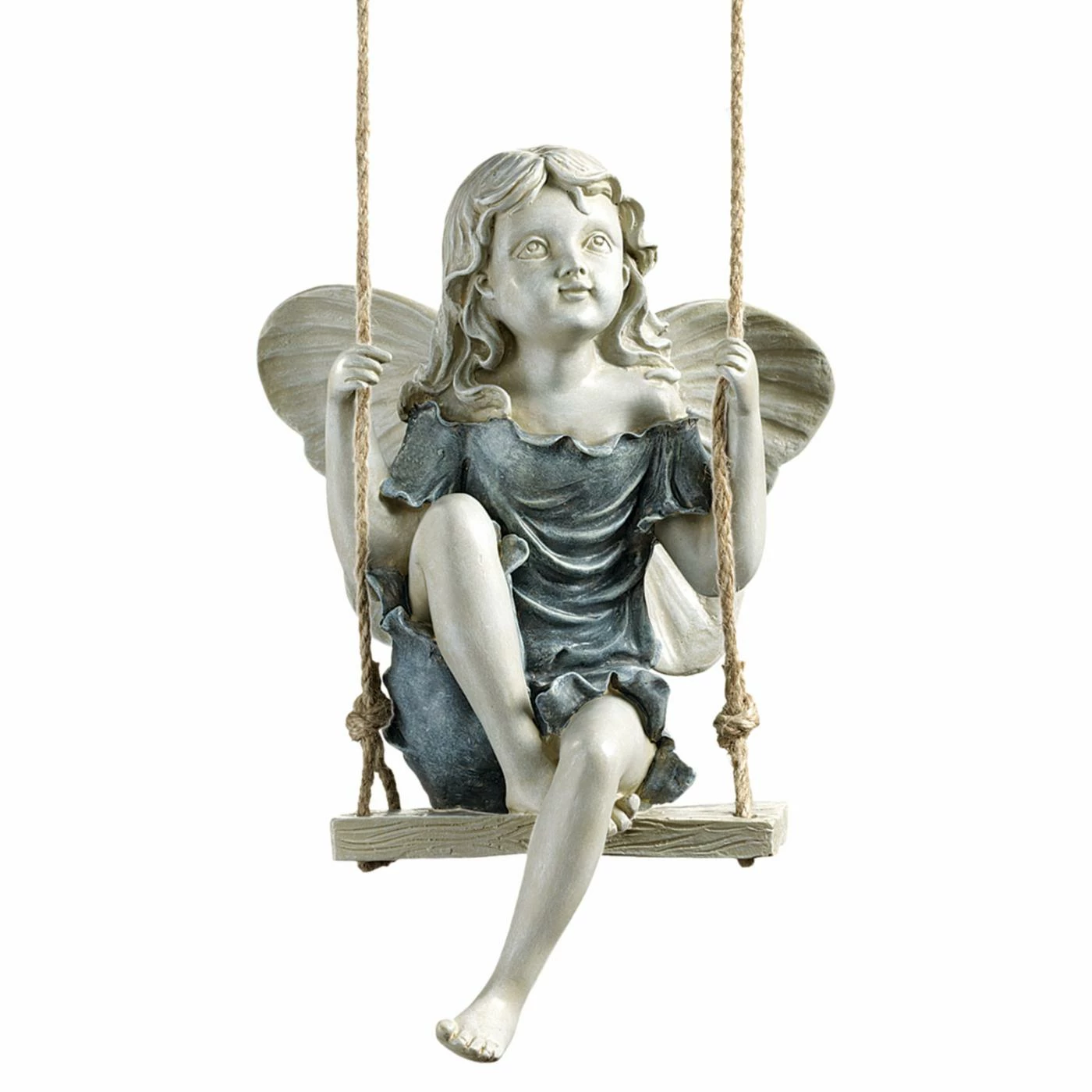 Let the Design Toscano Summertime Fairy on a Swing Statue swing free to your delight. This lovely statue is made from designer resin with a two-tone finish you will love. Swinging in that summer breeze from durable rope, this winged fairy is sure to inspire.