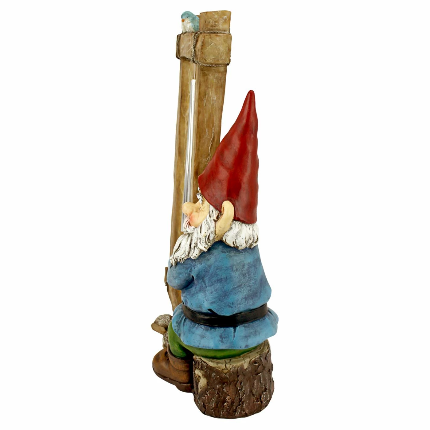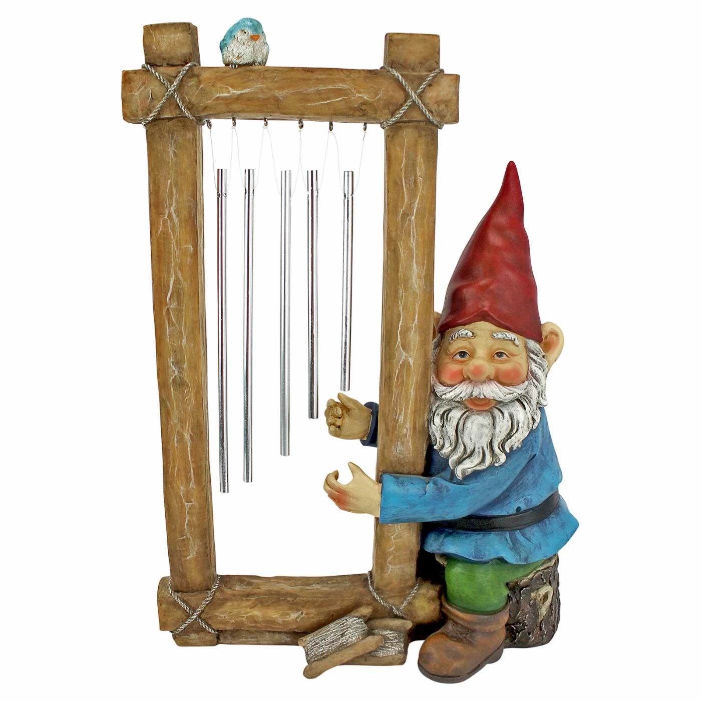 The Design Toscano Ringing His Chimes Garden Gnome Statue brings melodic charm to your porch, patio, or garden. This weatherproof resin statue depicts a gnome happily playing a wind chime. It’s also finely etched and covered in bright hues.