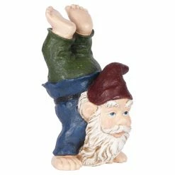 Add the Hi-Line Gift Ltd. Gnome Doing Handstand Figurine to the other garden gnomes in your collection. This figurine is made of durable polyresin, so it can withstand outdoor weather conditions.