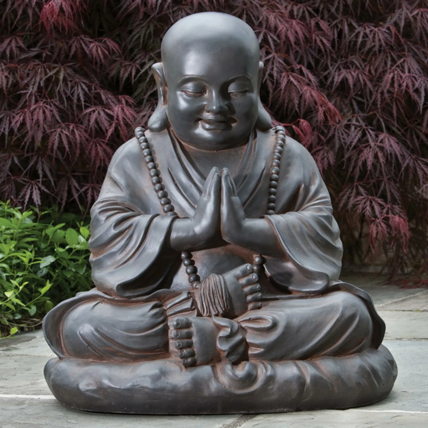 With its exceptional details and timeless appeal, the delightful Alfresco Home Seated Buddha Garden Statue will add a feeling of tranquility and bliss to your outdoor setting. Made of durable, lightweight Fiberstone™ blend, a combination of fiberglass and stone fibers, this statue boasts a fine texture and a rich Black Rust patina finish that will not fade in the sun or warp, crack, or split under harsh climatic conditions. With hands folded in reverence, this charming, smiling Buddha statue will watch over your garden and infuse your outdoor setting with a feeling of peace and harmony.