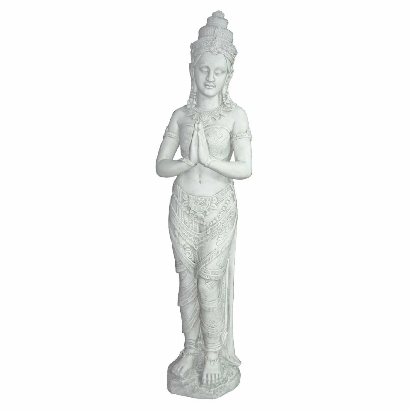 Grace your garden with the Design Toscano Thai Teppanom Beautiful Being Large Garden Statue. This beauty stands just over five feet tall and is made of cast resin. The hand-finished stone look enhances each breathtaking detail on this garden statue. Her mission is to protect your home and land. This garden statue is designed for indoor or outdoor display.