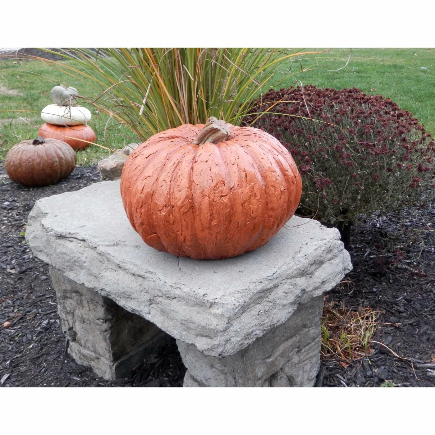 Give your outdoor decor a vintage touch with the Athena Garden Allydias Pick Cast Pumpkin Garden Statue. Hand-sculpted from clay and constructed of weather-resistant cast stone material, this realistic pumpkin is hand-painted and features incredible detail on the stem and body.