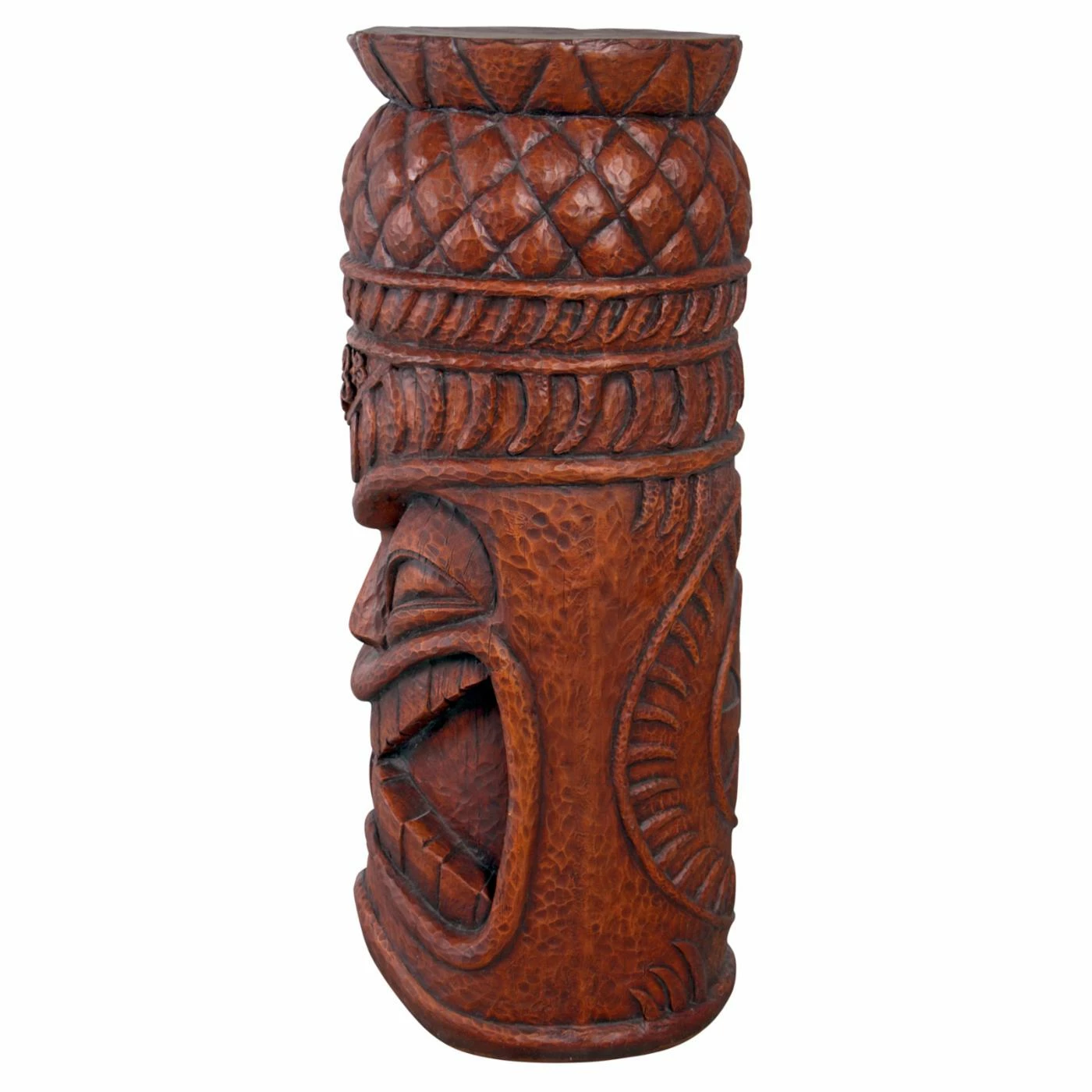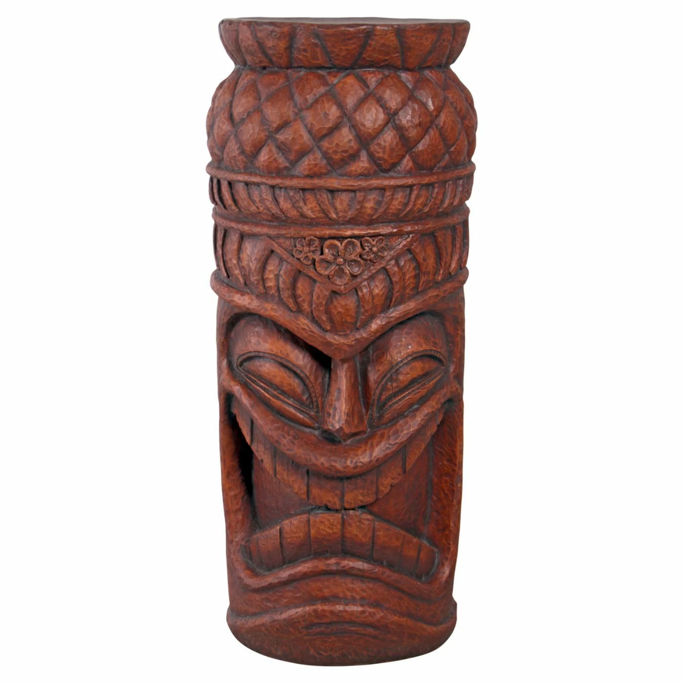The Design Toscano Grand Island Tiki Cocktail Console Garden Statue features a tribal-inspired face about to break into a riotous laugh, setting a festive mood for your next luau! This totem is carefully carved on all sides and is crafted of hand-painted designer resin. Recreate the golden age of surf with this retro-style statue.