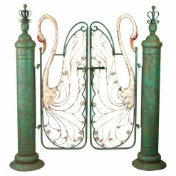 Infuse your entryway with a magical ambiance. The Design Toscano Swan Serenade Entryway Garden Gate is crafted in homage to the Art Nouveau style that prevailed in Gatsby’s time. Standing over four feet in height, this garden gate features open fretwork and an abundance of details. Sturdy newel posts are fitted with ornamental crown finials. Precision-cut and treated to a carefully antiqued painted finish, this gate is made to impress and to last.