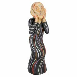 The Design Toscano The Silent Scream Garden Statue is a striking sculptural interpretation of the famous Edvard Munch work. This resin statue showcases the signature frightened expression along with a multicolored finish. Hand-painted details and textured brushstrokes bring this statue to life.