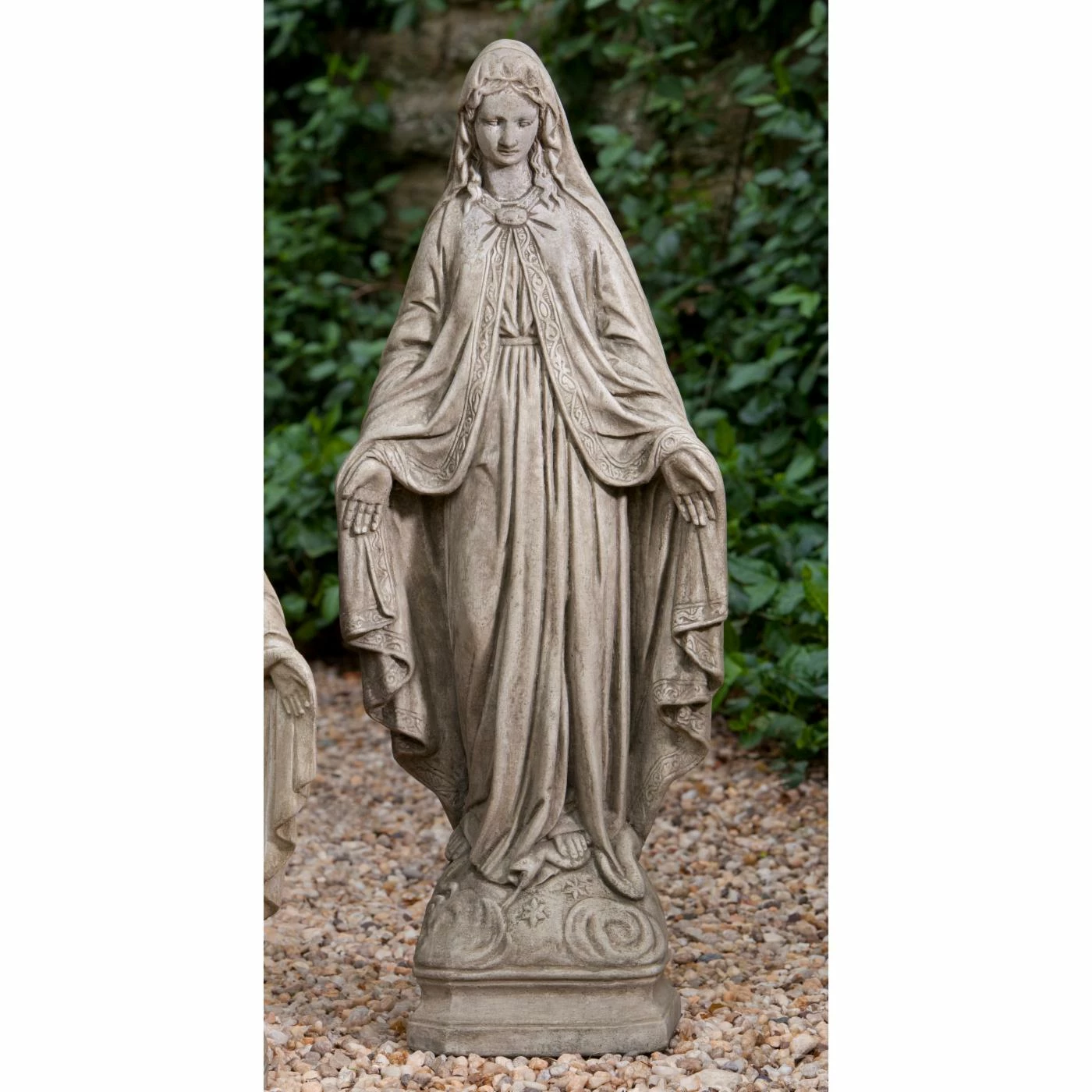The Campania International 26 in. Madonna Garden Statue is a beautiful way to display your faith. The Madonna stands atop a decorated pedestal with flowing robes and open hands. This statue adds an air of grace and peace to your garden.