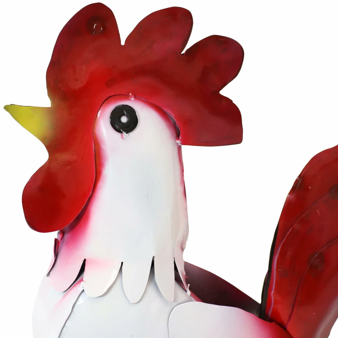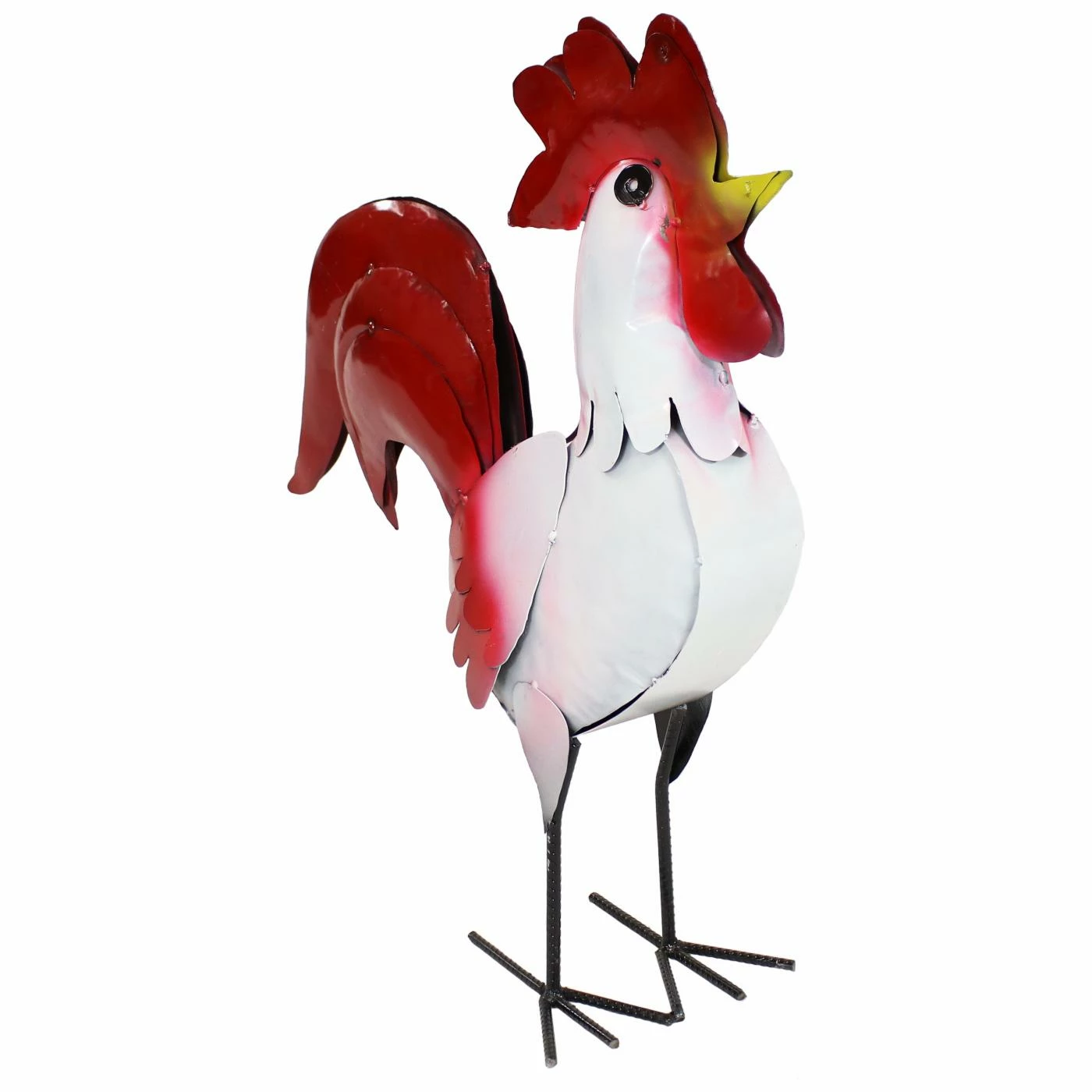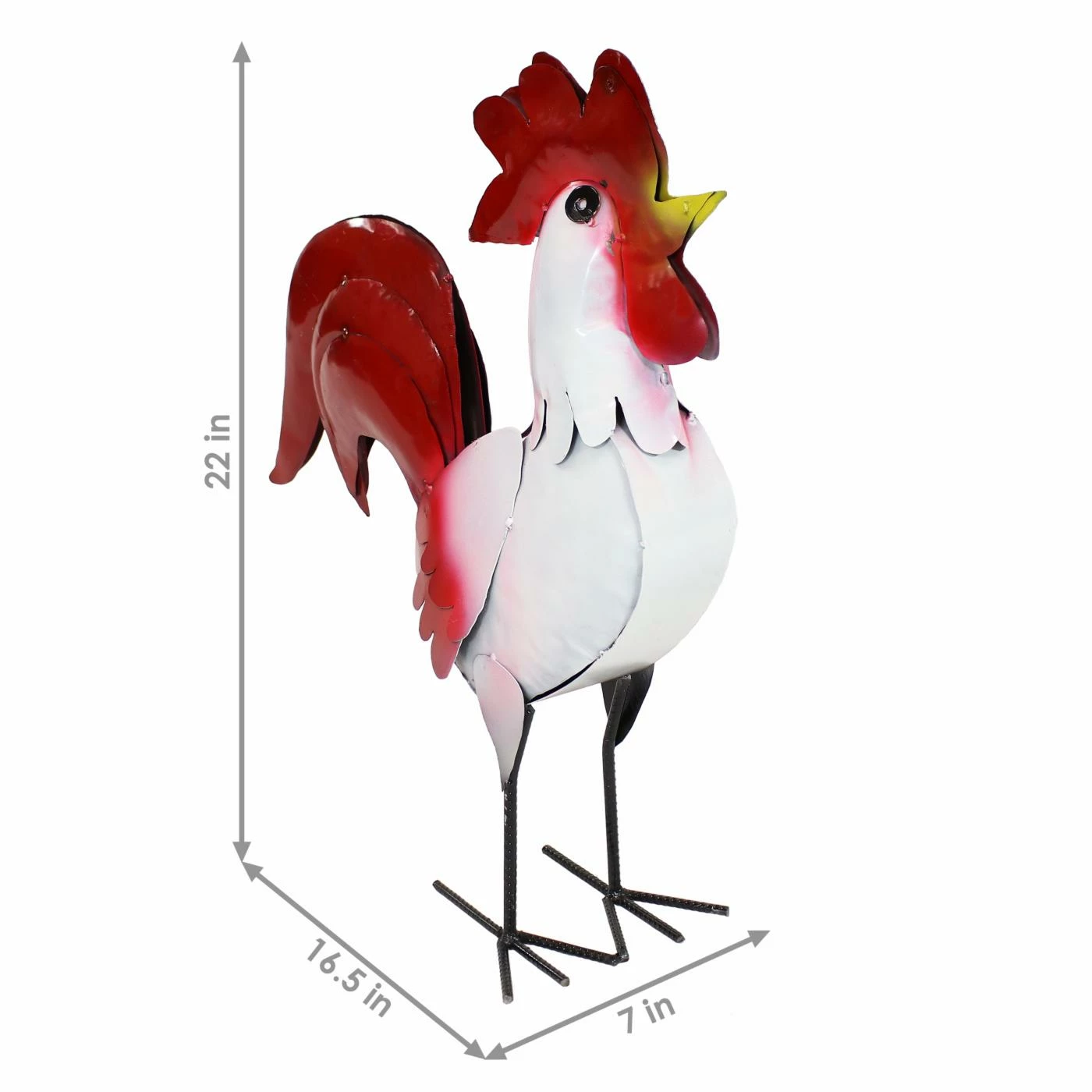 Add a touch of farmhouse charm to your home or garden with Cluck the Rooster. This rustic metal yard art is made from durable steel and features a distinct weathered look. It can be used in a variety of places both indoors and outdoors. If used outdoors, this statue will develop a natural patina over time. Because this statue is handcrafted, the colors and design may vary.