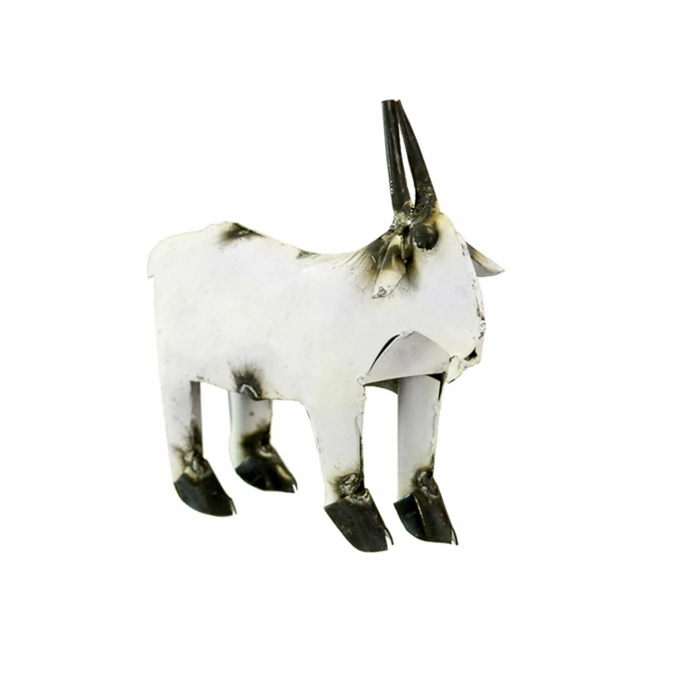 The iron and metal Rustic Arrow Extra Small Goat is ready for indoor or outdoor display. This neutrally hued goat features a handcrafted construction with recyclable materials, giving each goat a unique look.